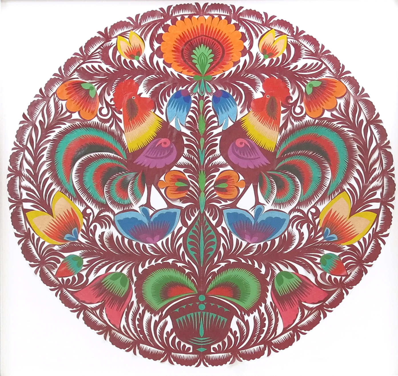 Lowicz Wycinanki a paper-cut design of two cockerels