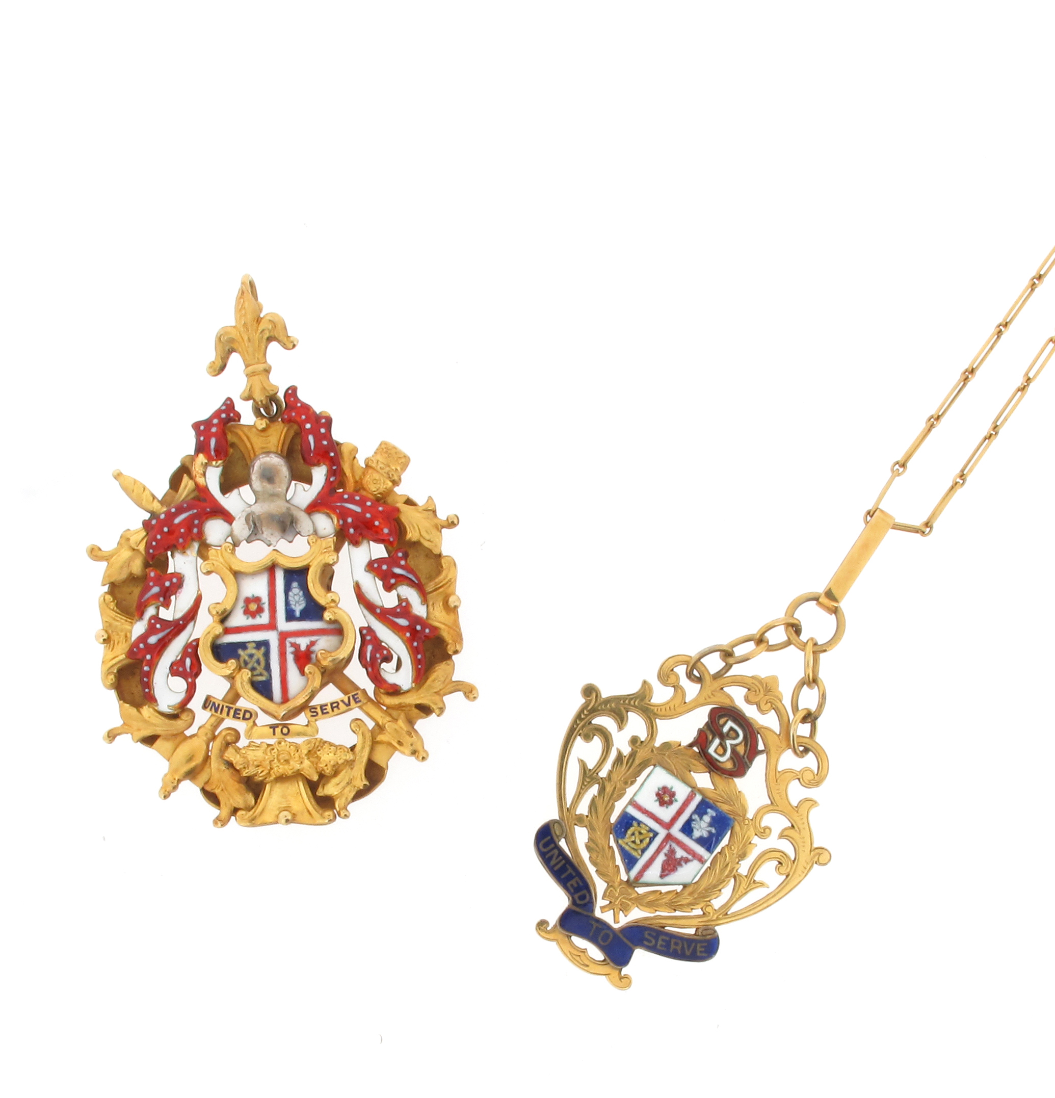 A yellow gold municipal pendant with enamel decoration for Southwark