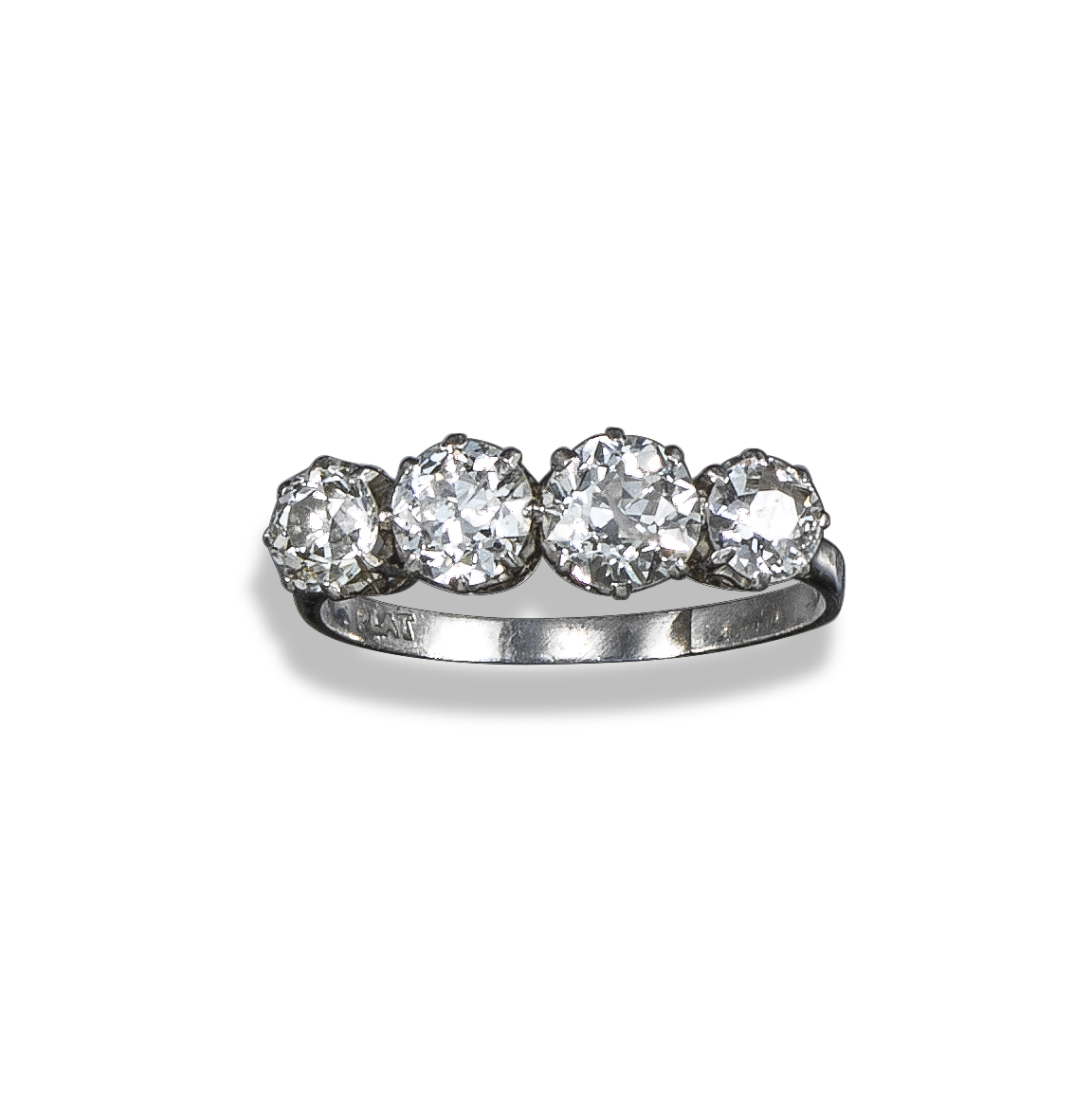 A diamond four stone ring, set with graduated old circular-cut diamonds in platinum, size O
