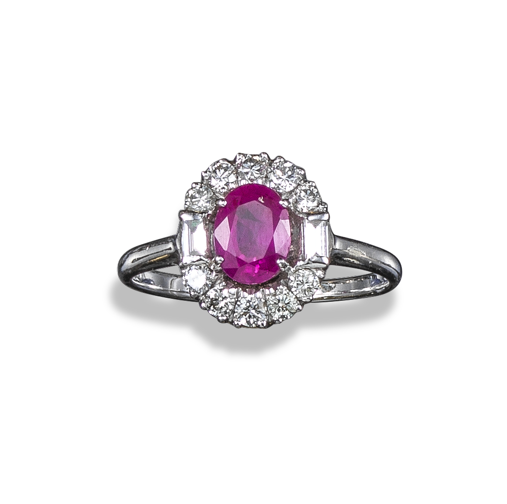 A ruby and diamond cluster ring