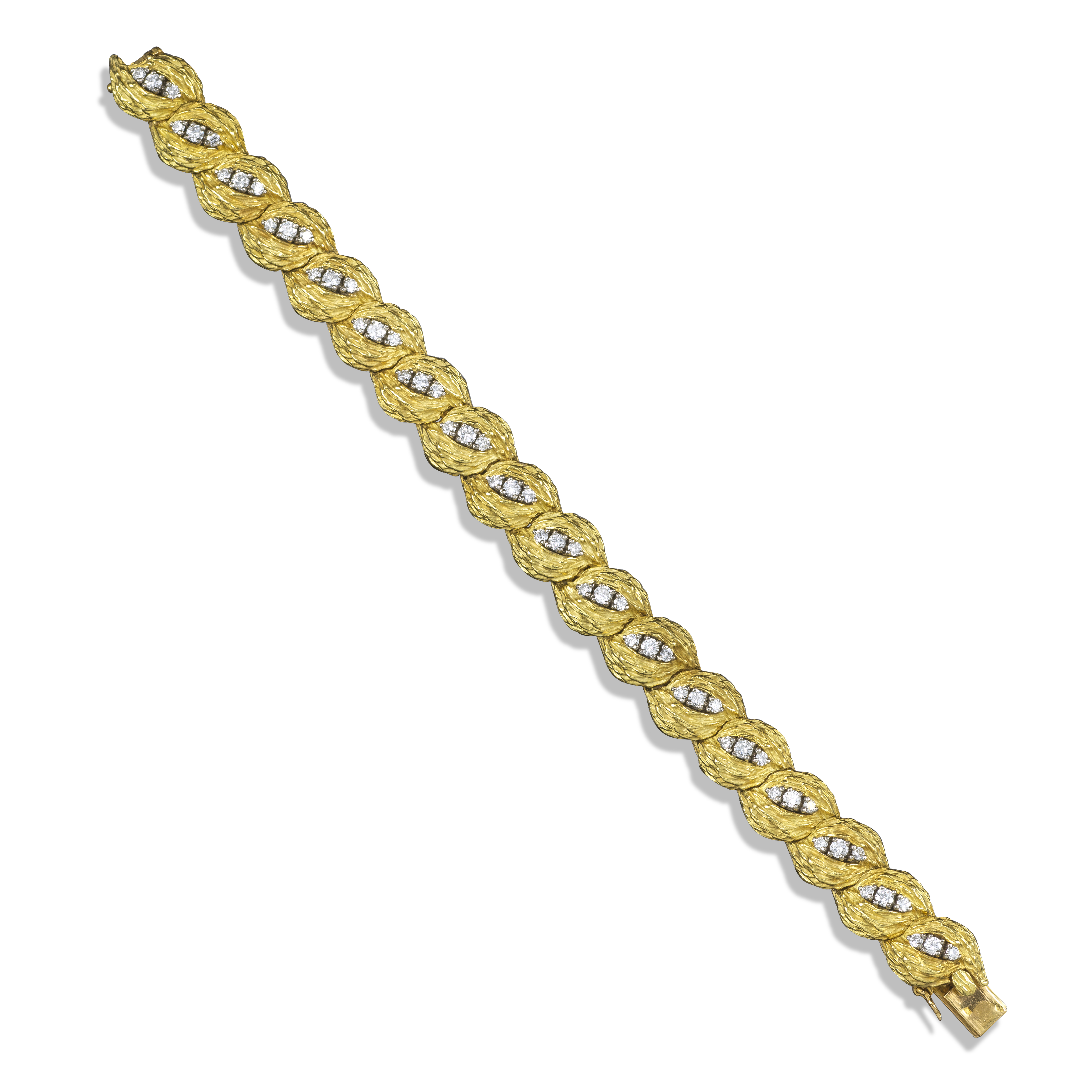 A French textured gold and diamond bracelet by Georland