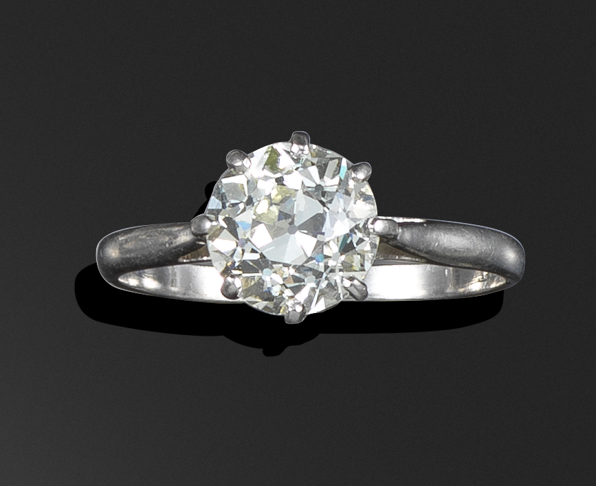 A diamond solitaire ring, the old circular-cut diamond weighs 2.32cts (known weight) and is set in platinum, size Q