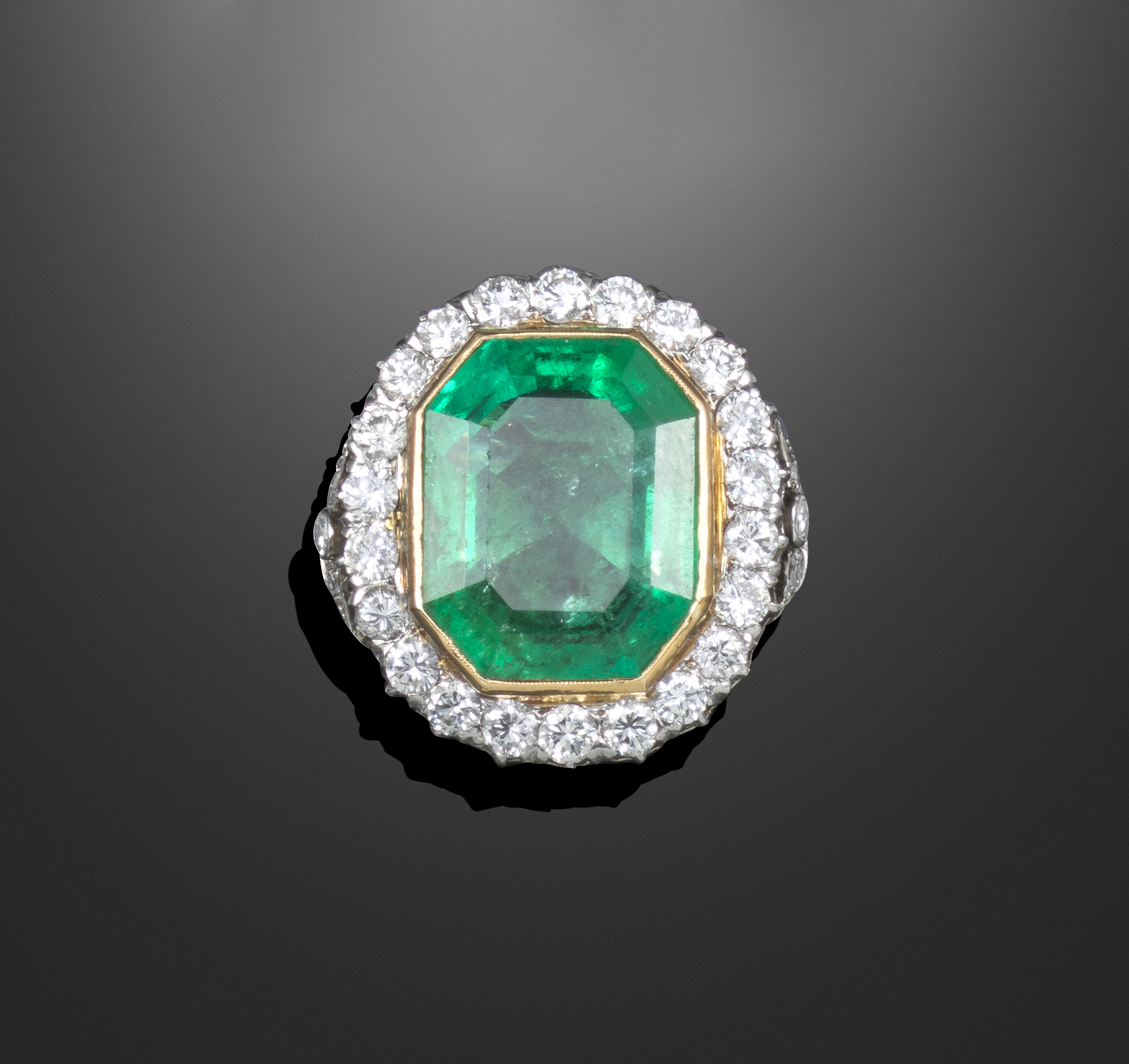 A large emerald and diamond cluster ring