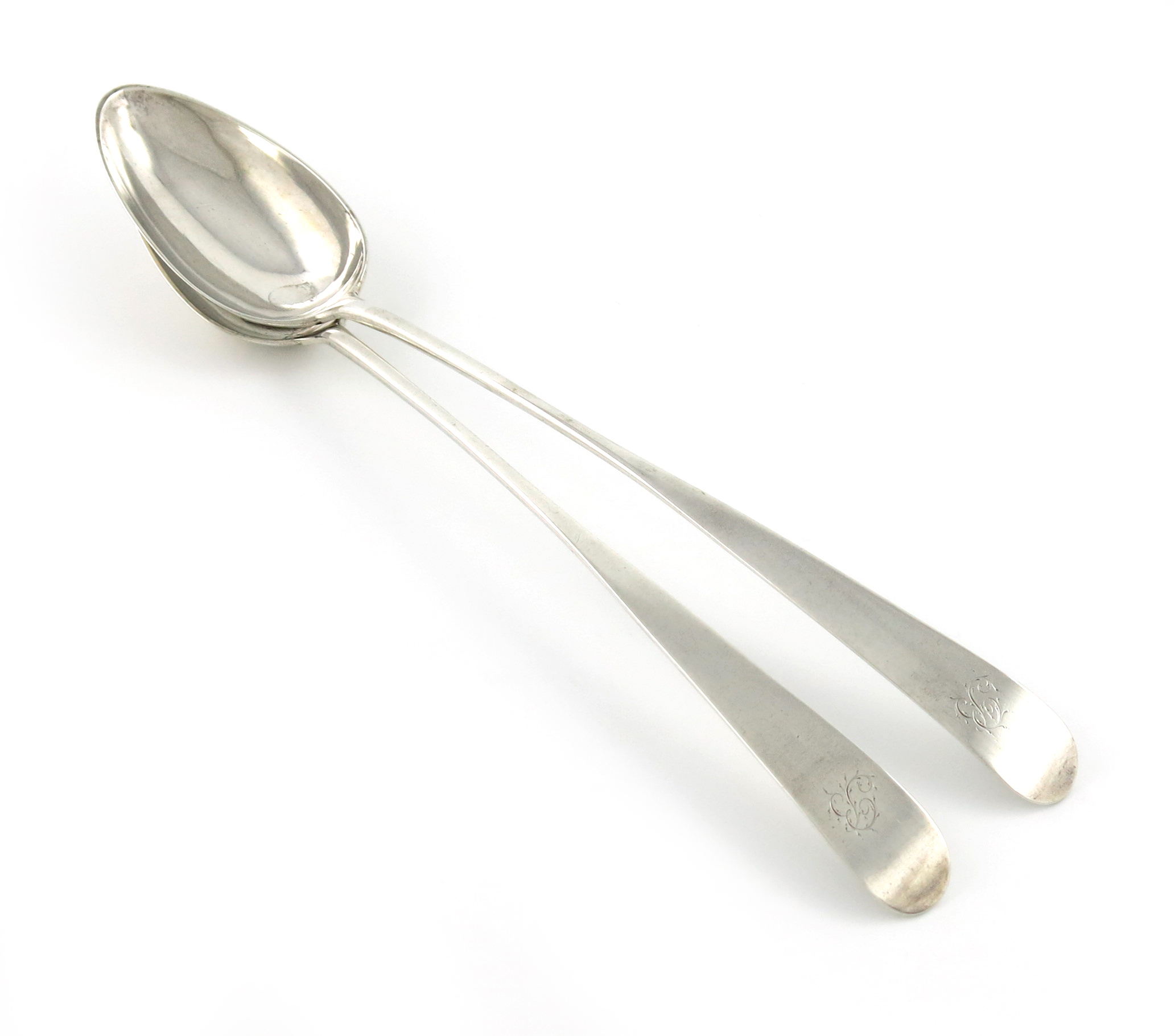A pair of early 19th century Scottish provincial silver basting spoons,