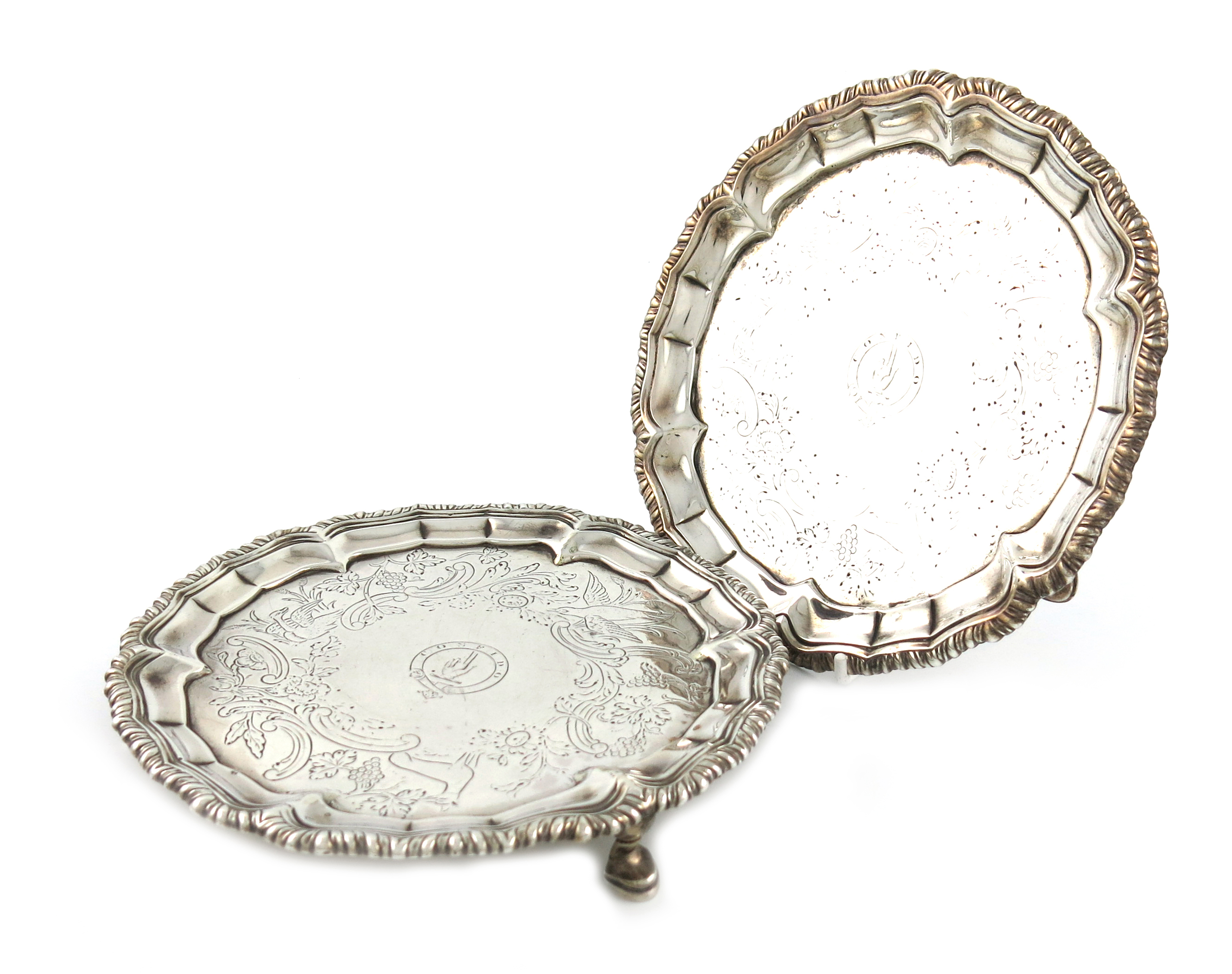A pair of George III Irish silver waiters