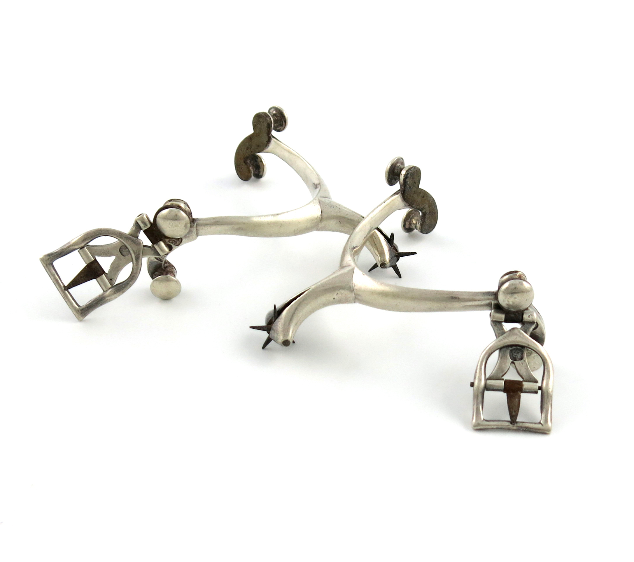 conventional form, steel rowels, with buckles, length 7cm, approx. weight 3.9oz. (2)