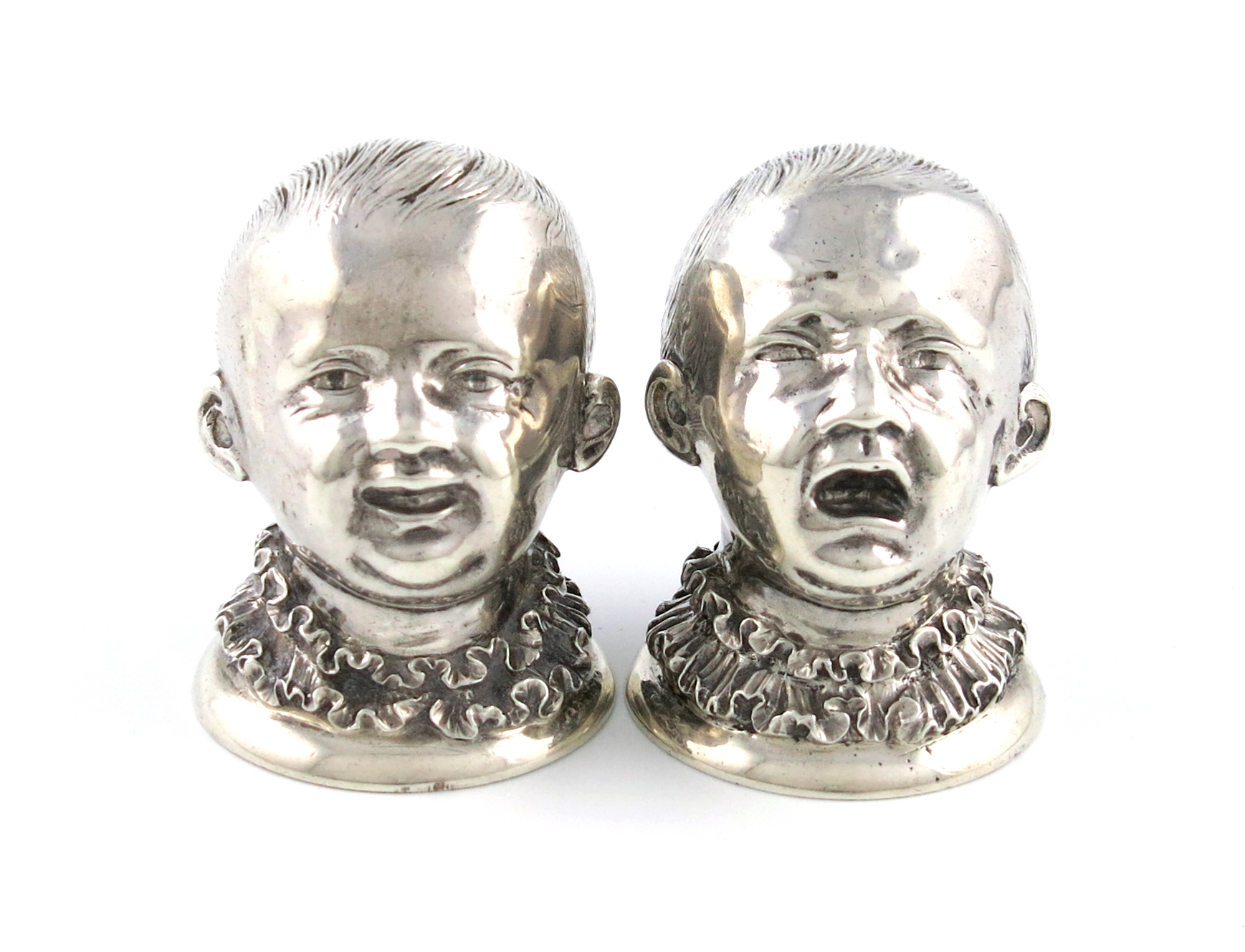 modelled as the heads of young boys, the necks with ruffles, height 5cm, approx. weight 4.3oz.