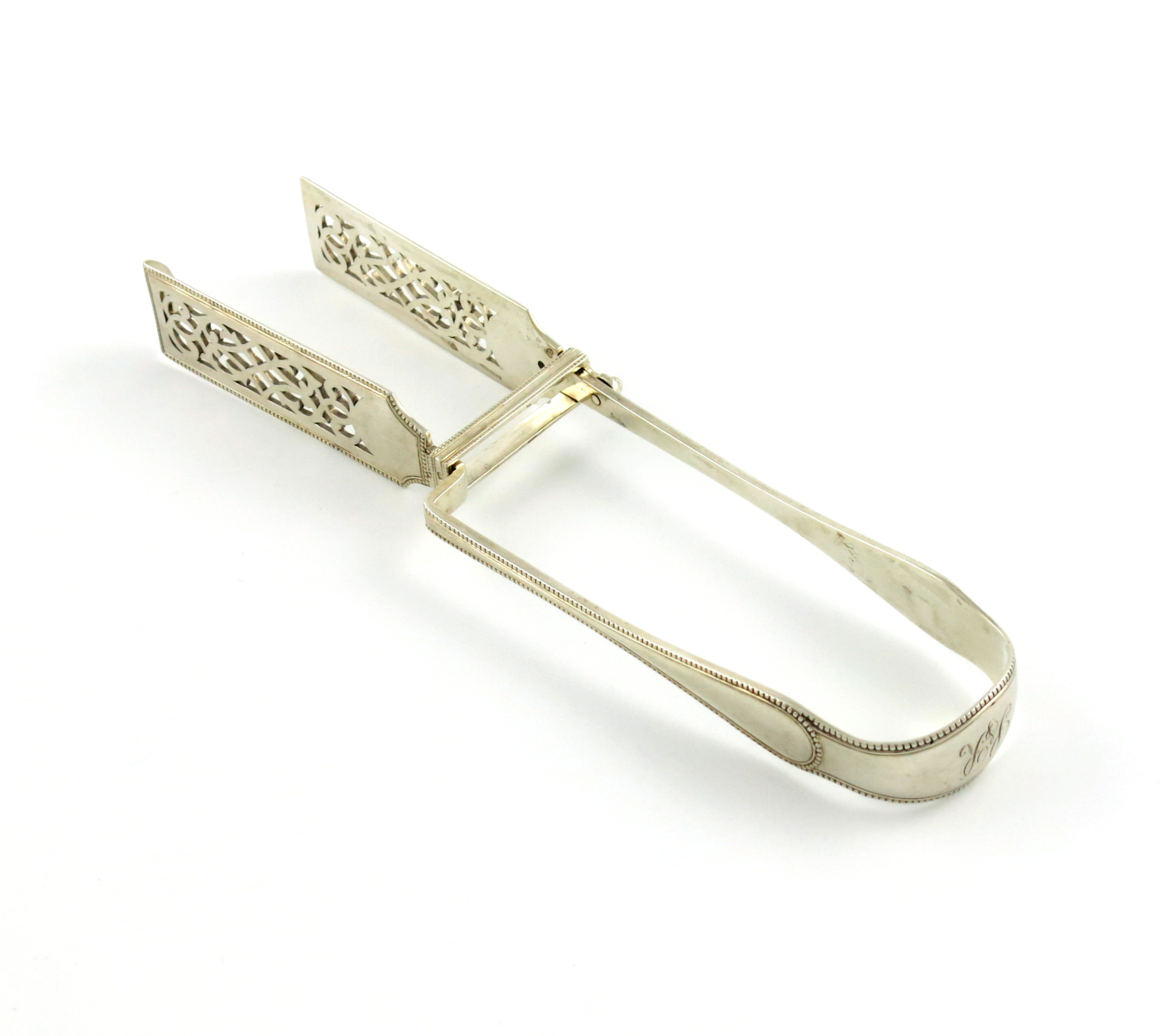 the blades with pierced decoration, the terminal with initials, length 25cm, approx. weight 6.8oz.