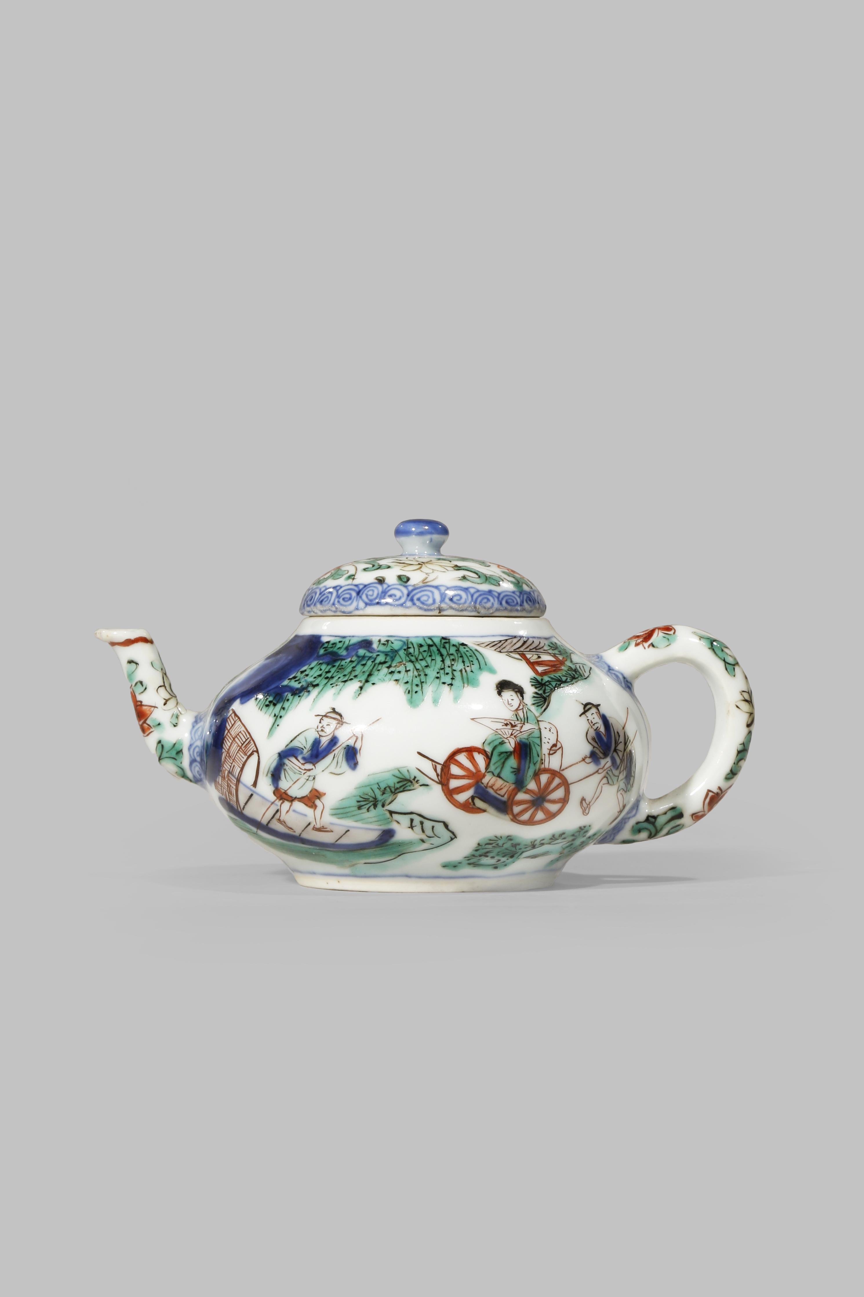 A SMALL CHINESE WUCAI TEAPOT AND COVER