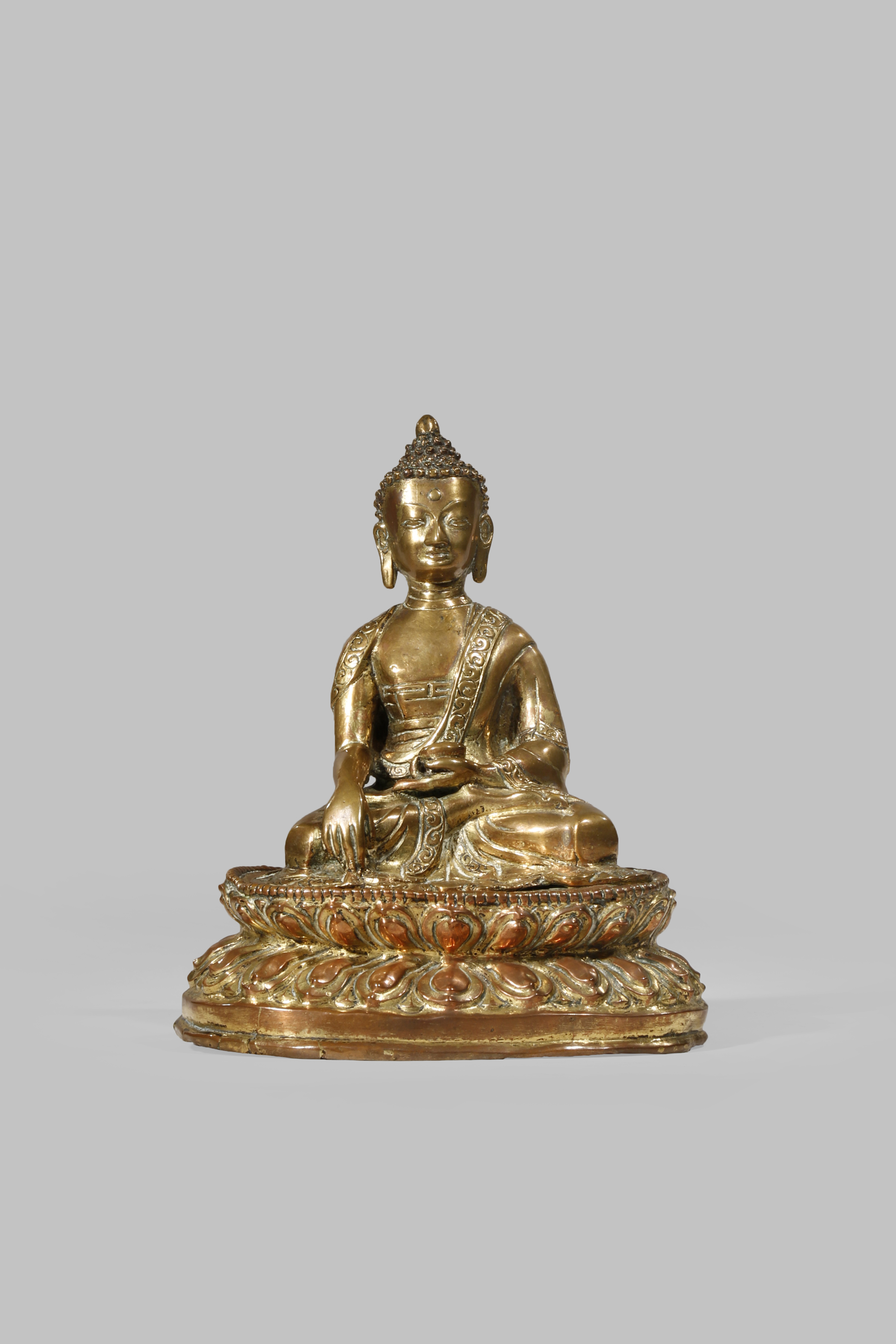 A CHINESE GILT-COPPER FIGURE OF BUDDHA SHAKYAMUNI 18TH/19TH CENTURY Seated in vajraparyankasana