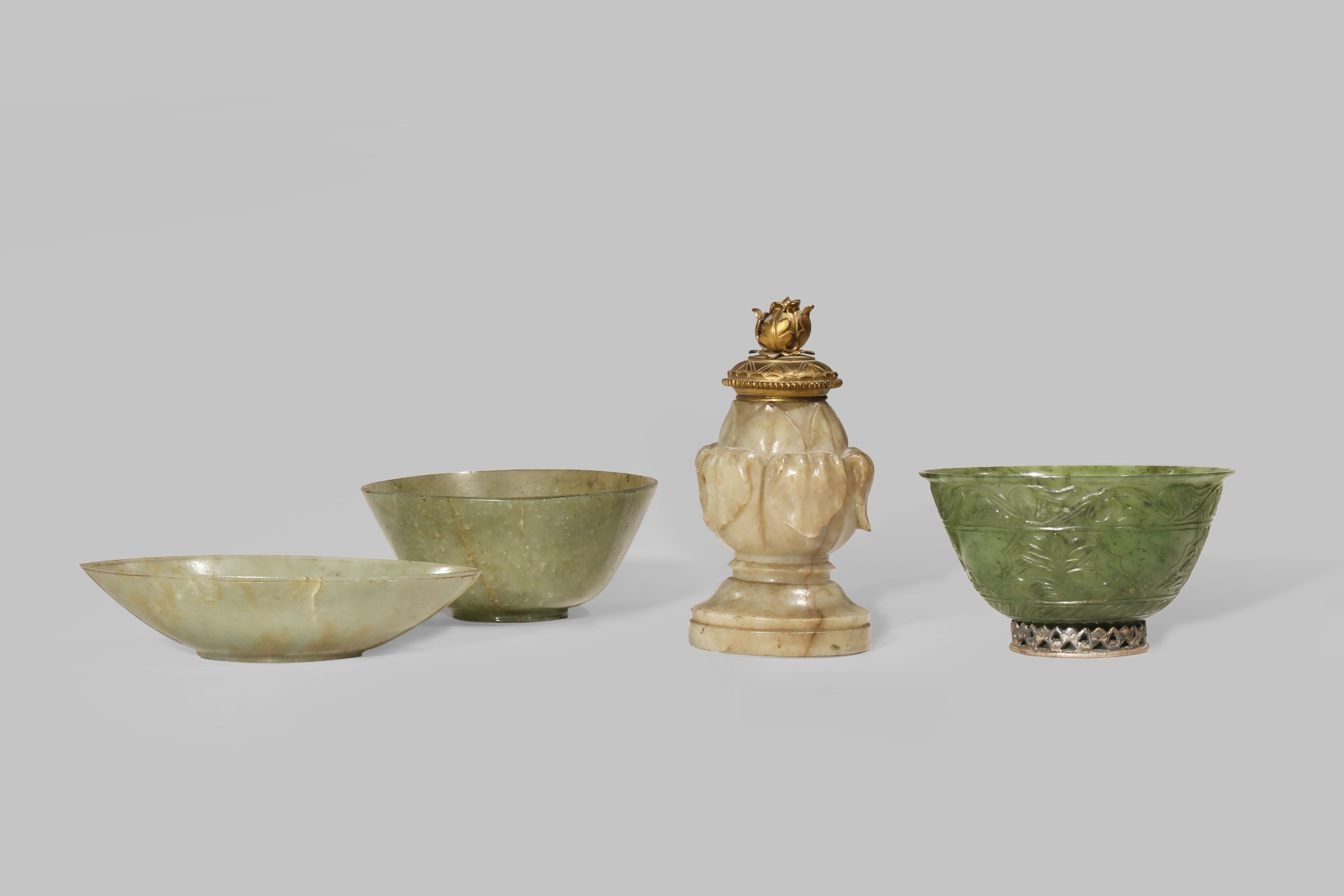 THREE JADE BOWLS 19TH CENTURY One a spinach-green