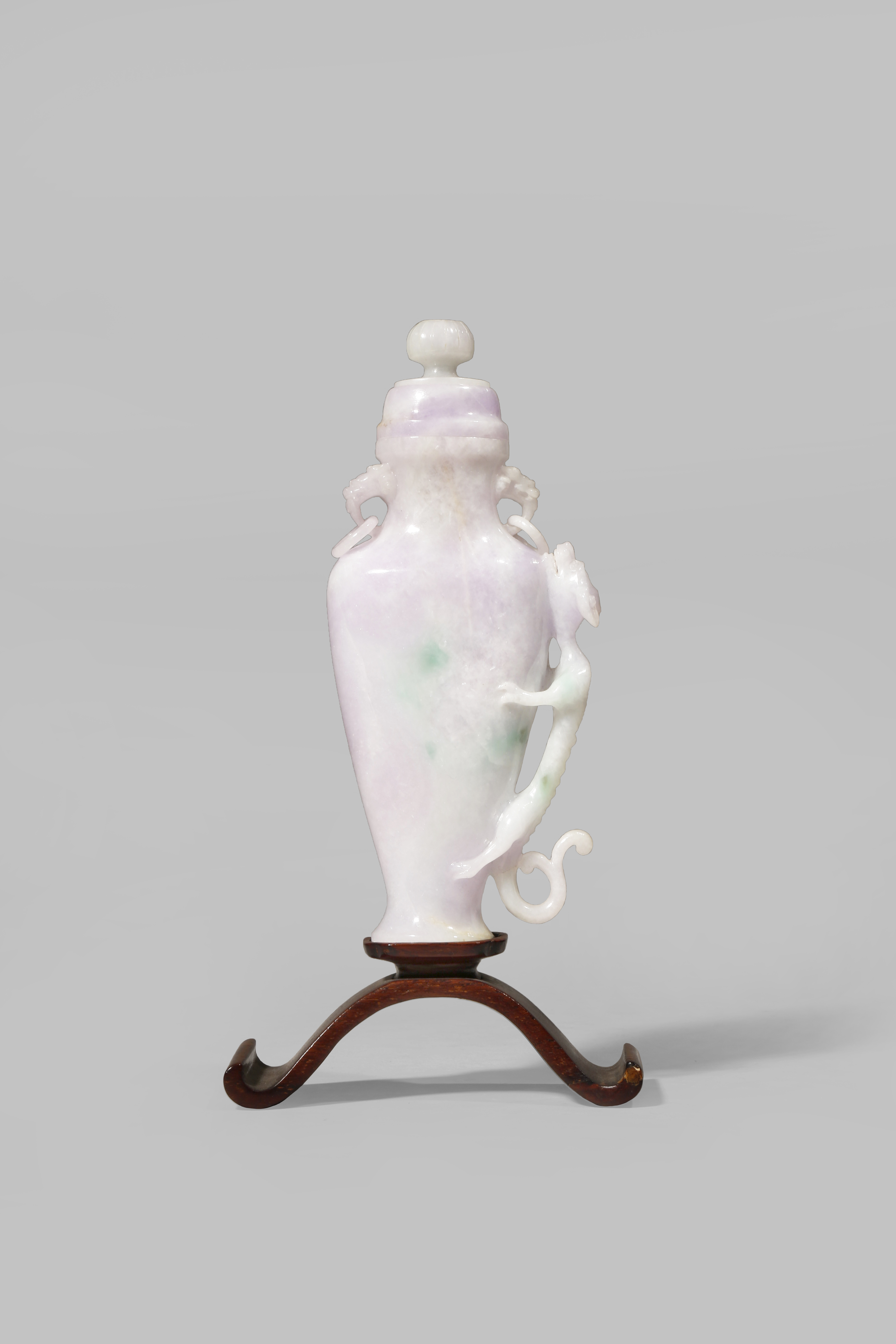 A CHINESE LAVENDER JADEITE VASE AND COVER 19TH CENTURY The tapering body with two dragon...