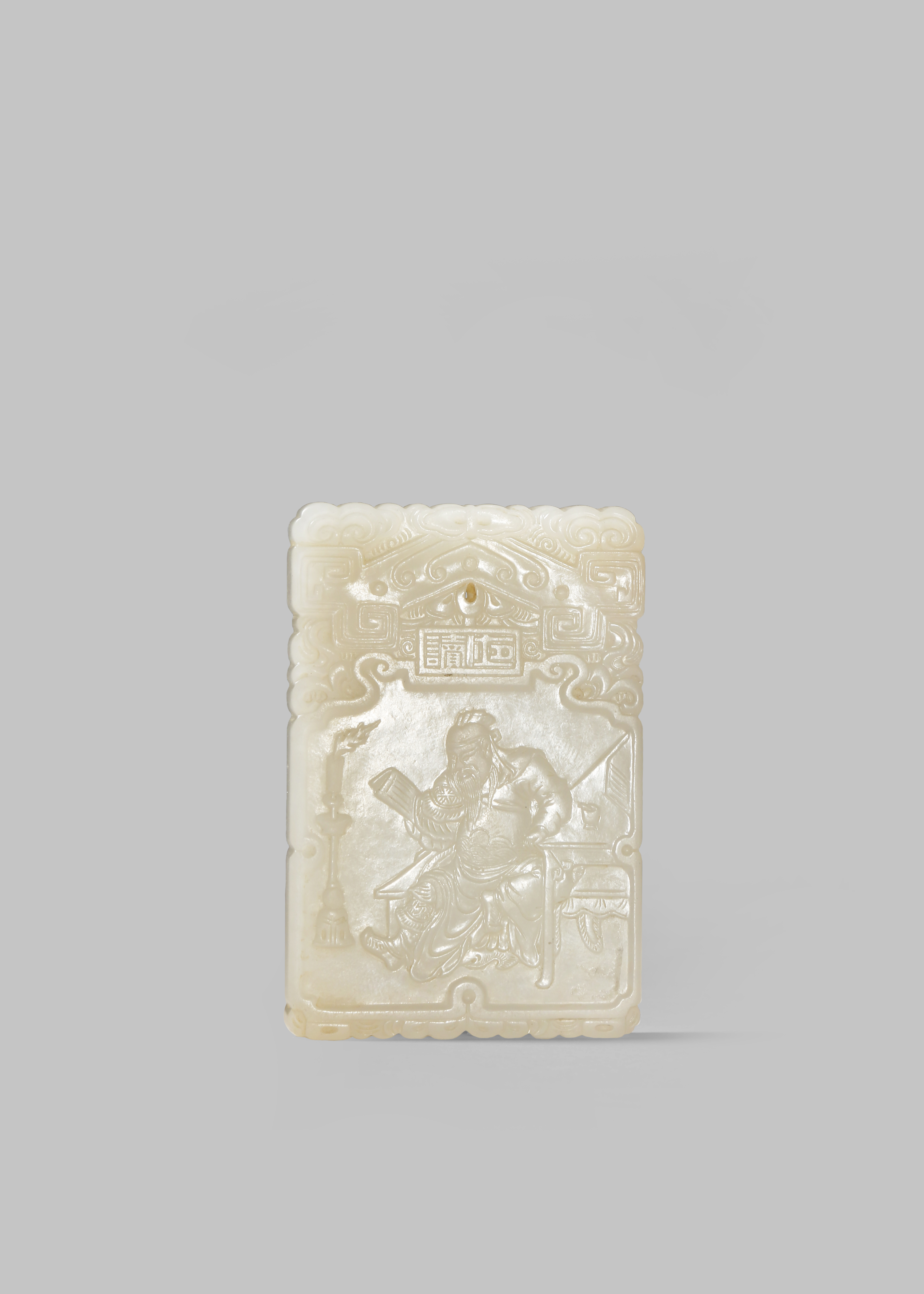 A CHINESE WHITE JADE RECTANGULAR 'ZI GANG' PLAQUE QING DYNASTY OR LATER Carved in shallow relief...
