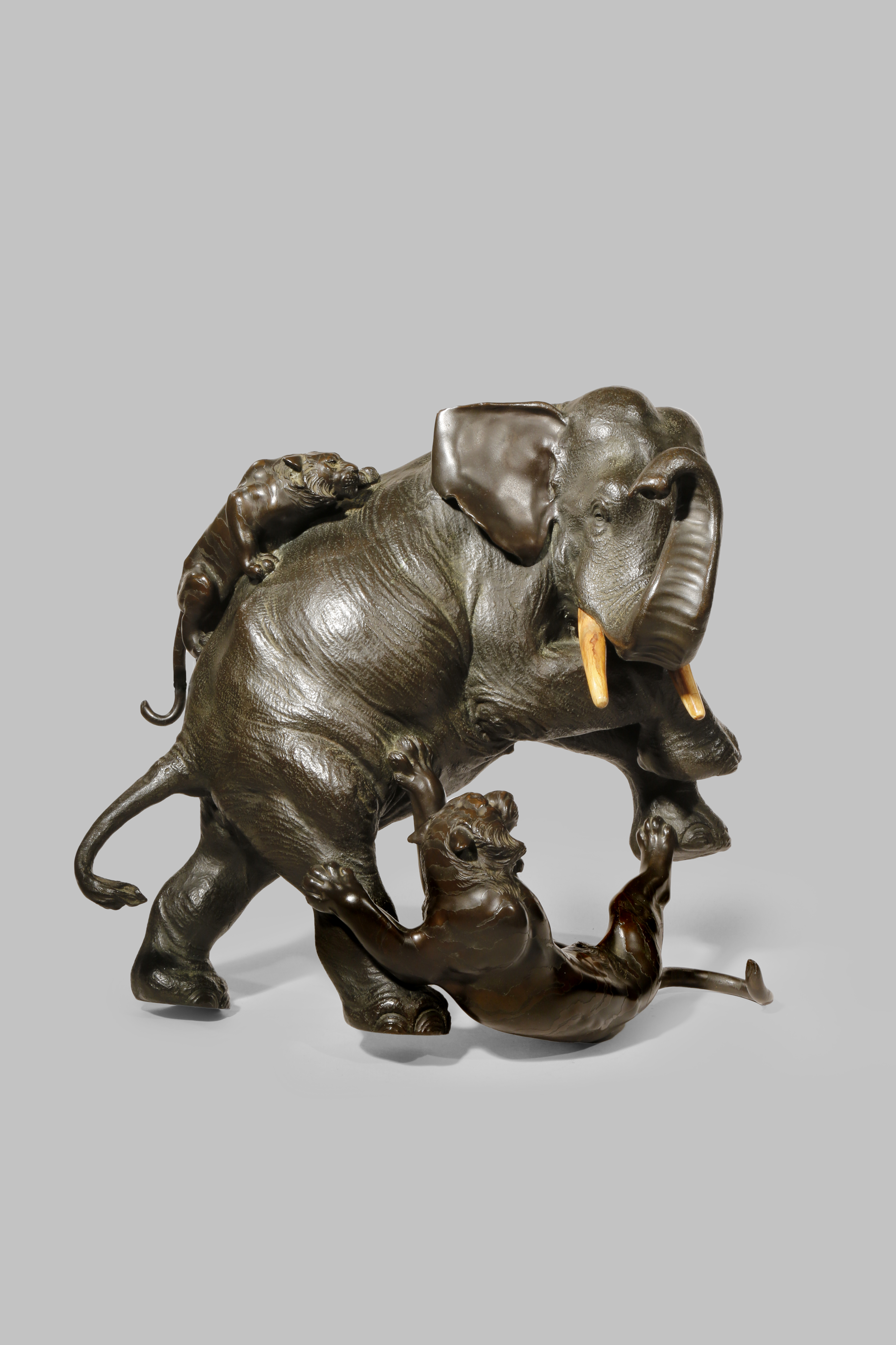 A LARGE JAPANESE BRONZE MODEL OF AN ELEPHANT