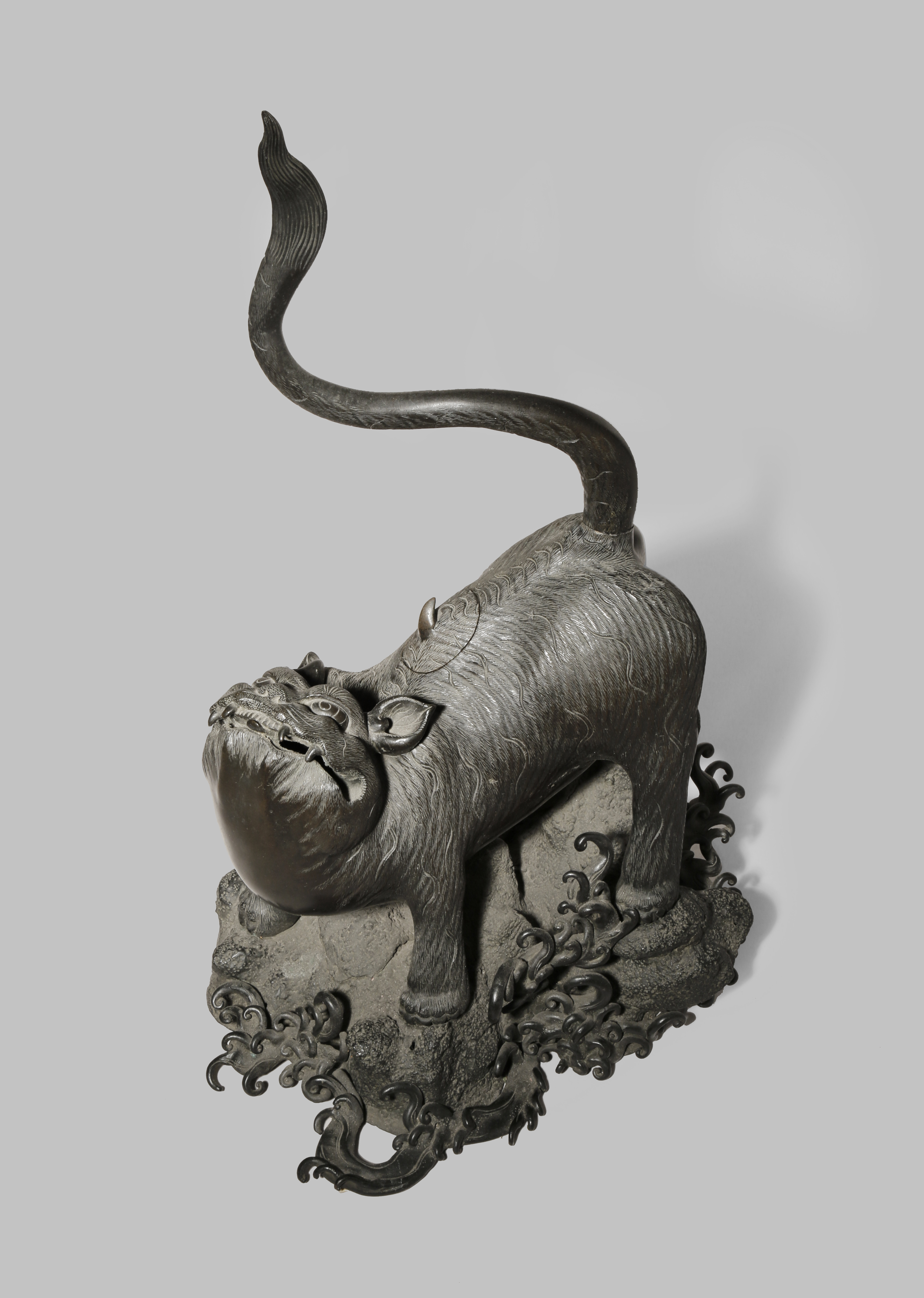 A BRONZE INCENSE BURNER MODELLED AS A TIGER 18TH/19TH CENTURY The stubby-looking feline standing...