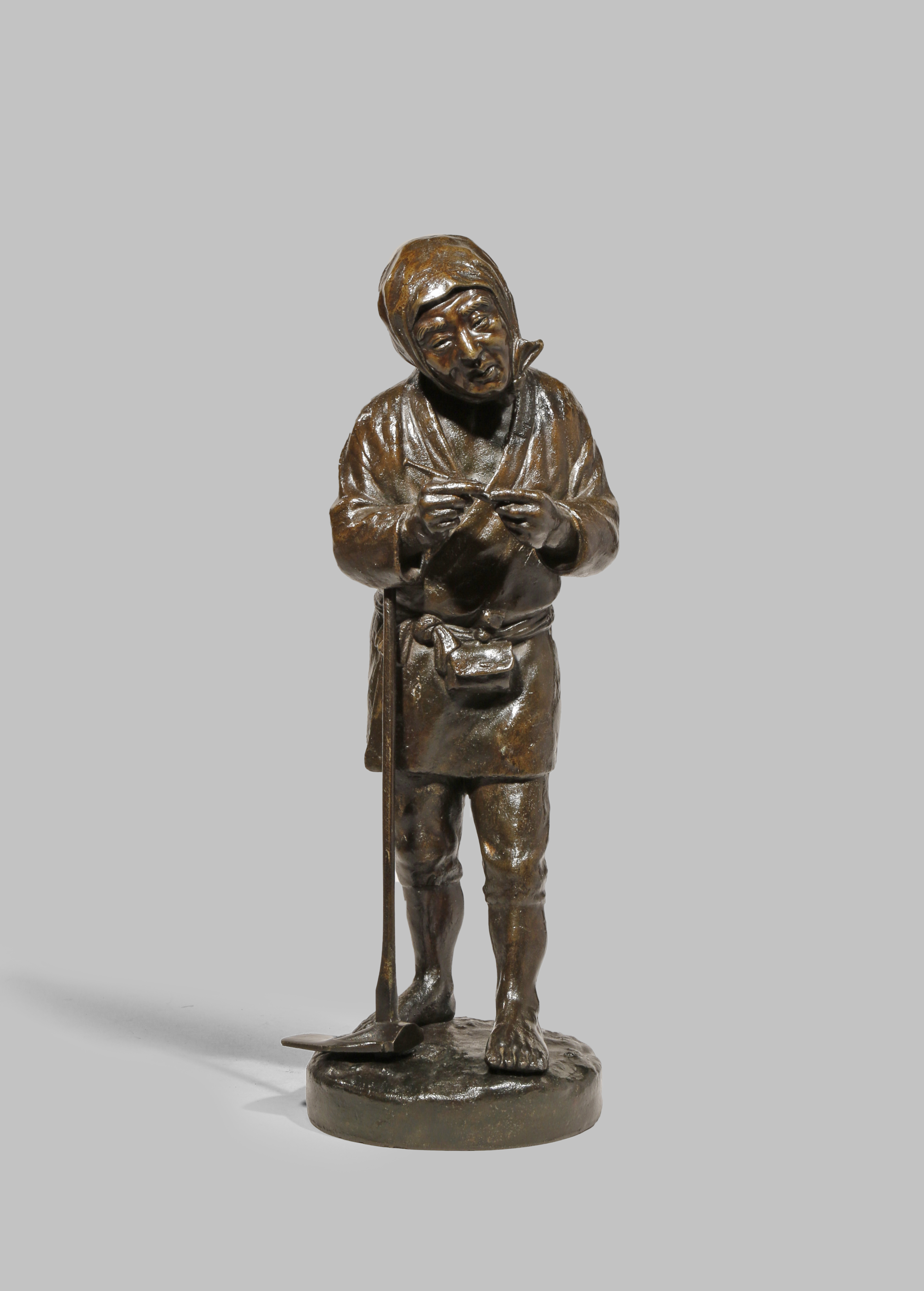 A JAPANESE BRONZE FIGURE OF A LABOURER