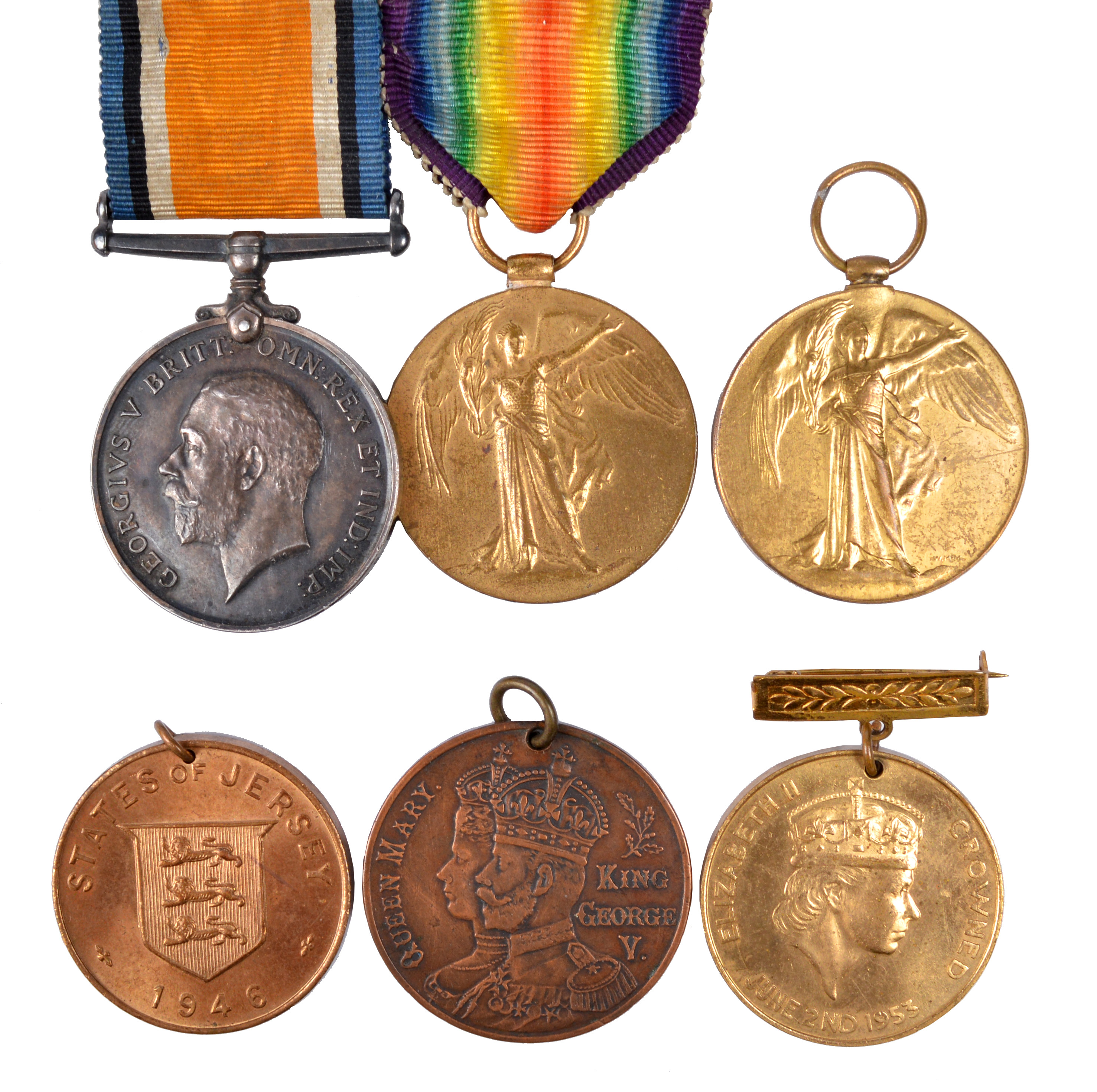A small quantity of medals and militaria, including: a Great War Army Medical Services arm band, with applied red cross, stamped roundel, and three mother-o'-pearl buttons; a Victory Medal (39609 A. CPL. A.J. FOOT. R.A.M.C.); two small photographs of a driver with his motor ambulance; a Great War pair (M2-203891 PTE. H. LITTLE. A.S.C.); and other items. [qty]