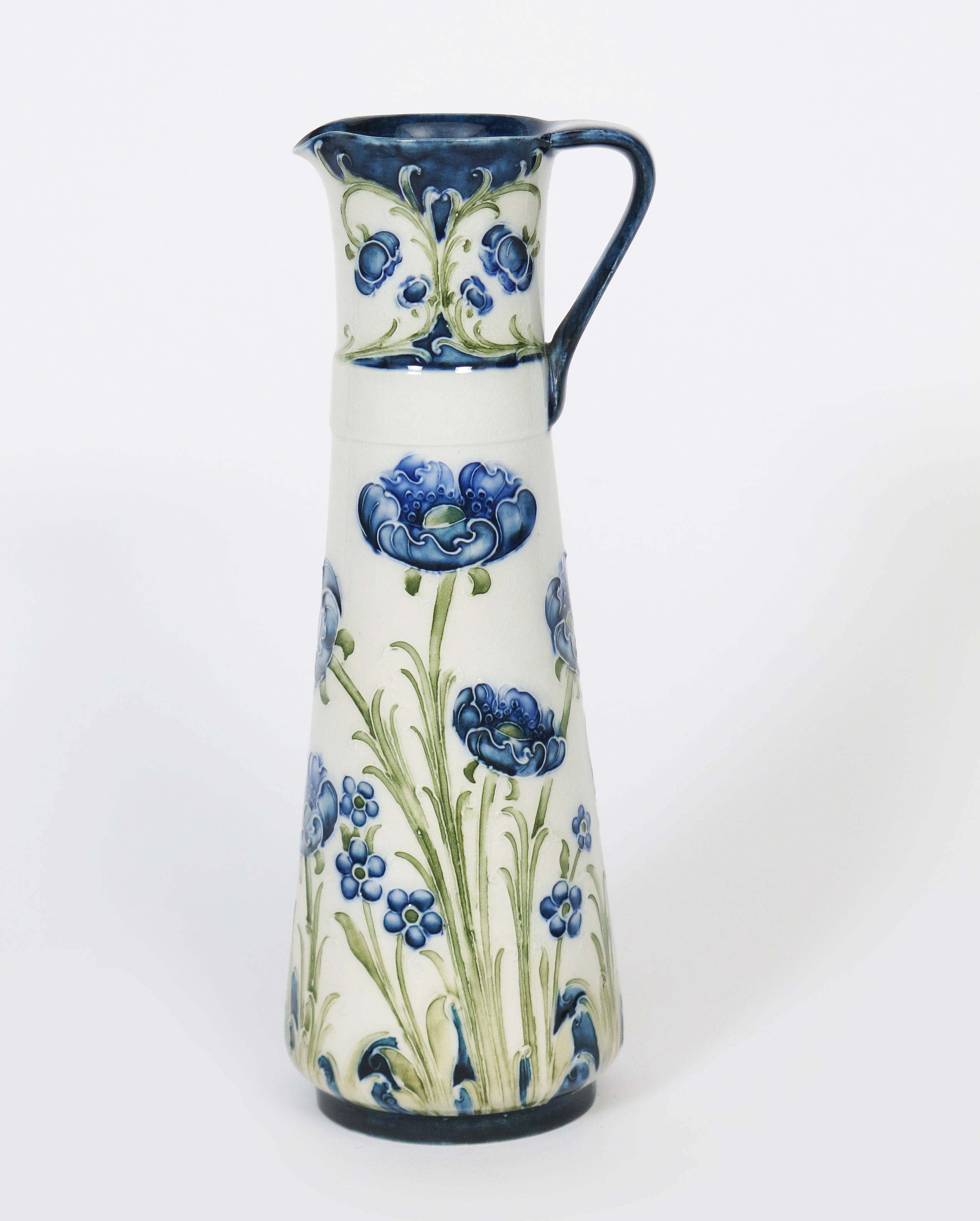 'Blue Poppy' a James Macintyre & Co Florian Ware ewer designed by William Moorcroft