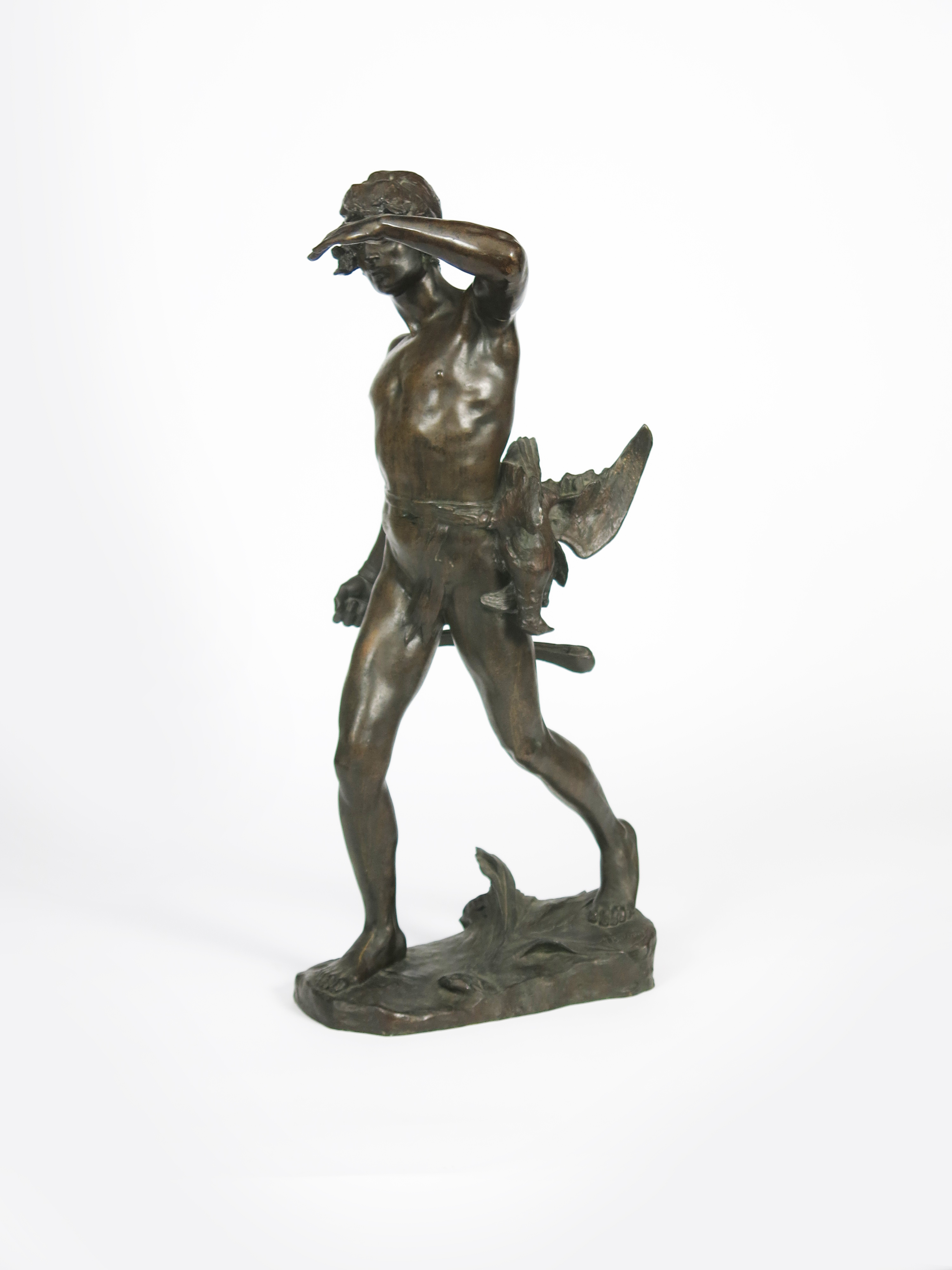 A large patinated bronze figure of a young boy hunting by Maurice Bouval