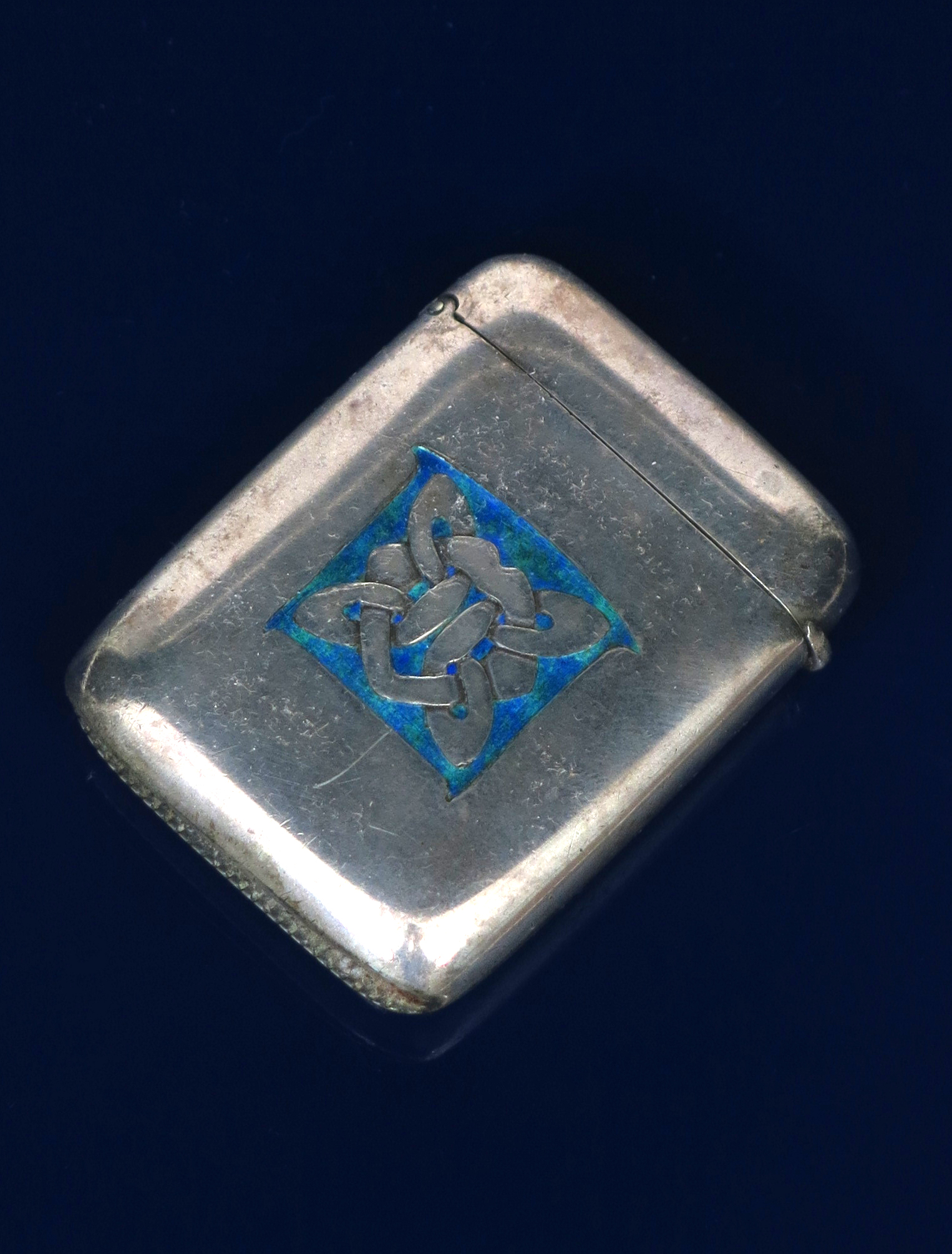 A Liberty & Co silver and enamel vesta case designed by Archibald Knox