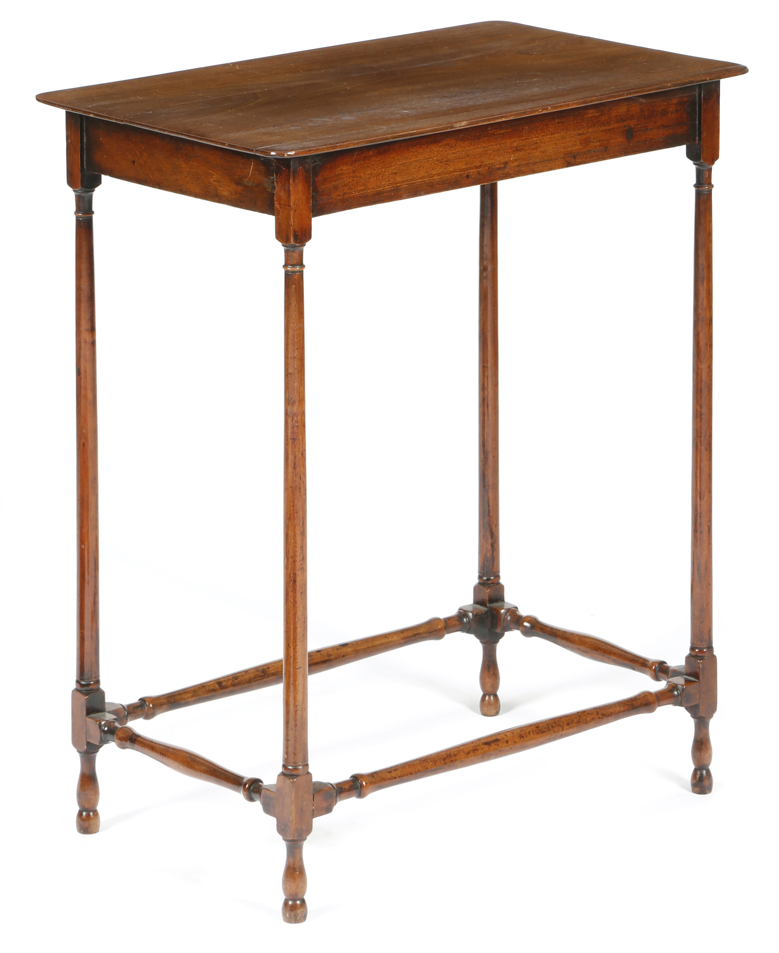 A mahogany spider leg occasional table, with turned legs united by peripheral stretchers, 67.4cm high, 55.7cm wide, 33.8cm deep.