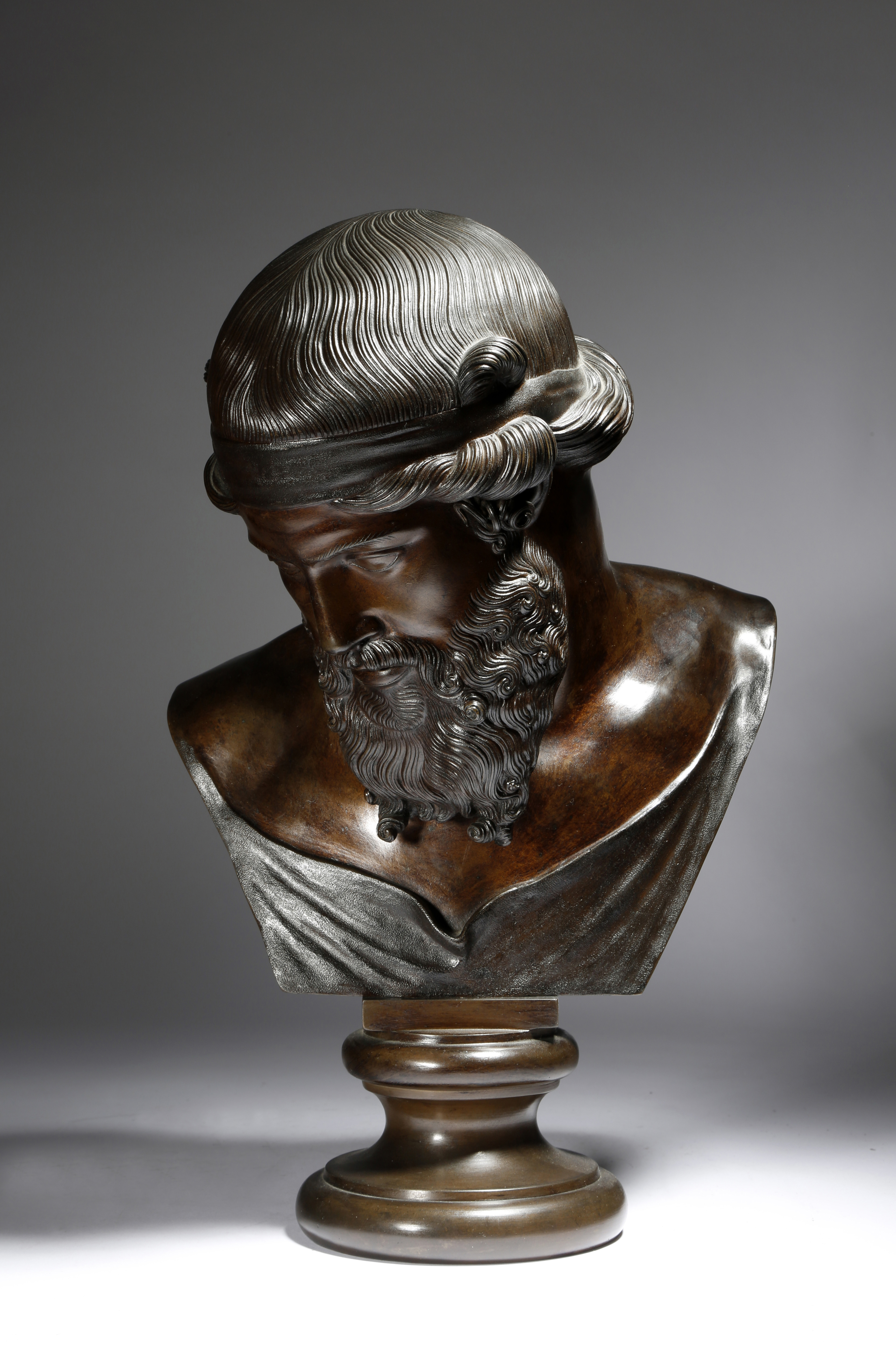 After the antique. A late 19th century Italian Neapolitan bronze Grand Tour bust of Plato by Sommer