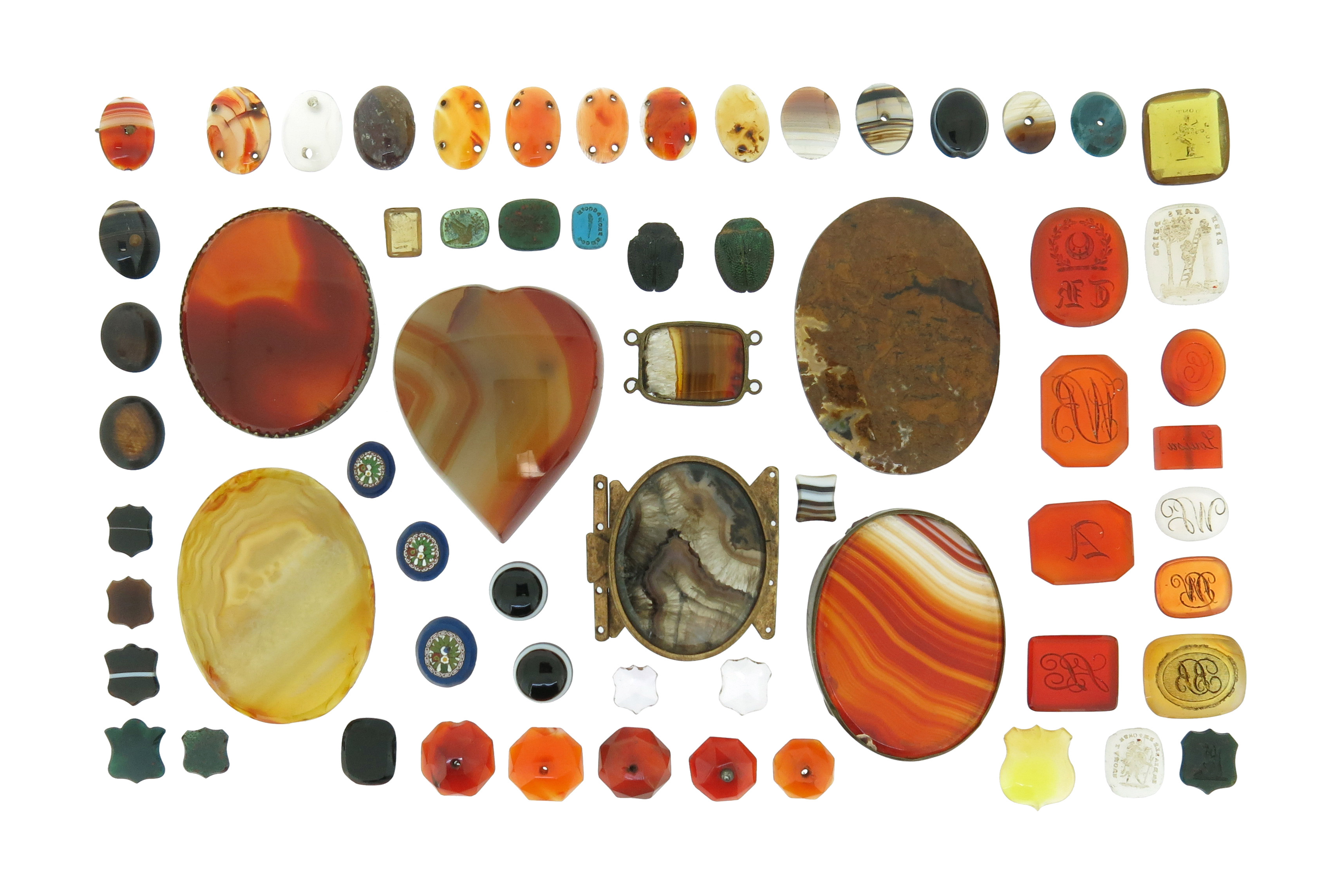 A collection of assorted hardstone mounts and seventeen carved hardstone intaglios