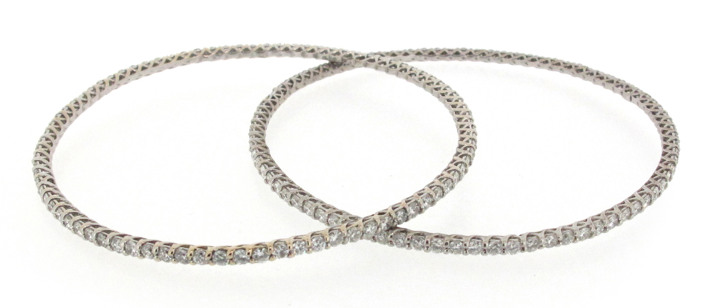 A pair of diamond-set white gold bangles, each set with a full circle of round brilliant-cut diamonds, 6.3cm internal diameter