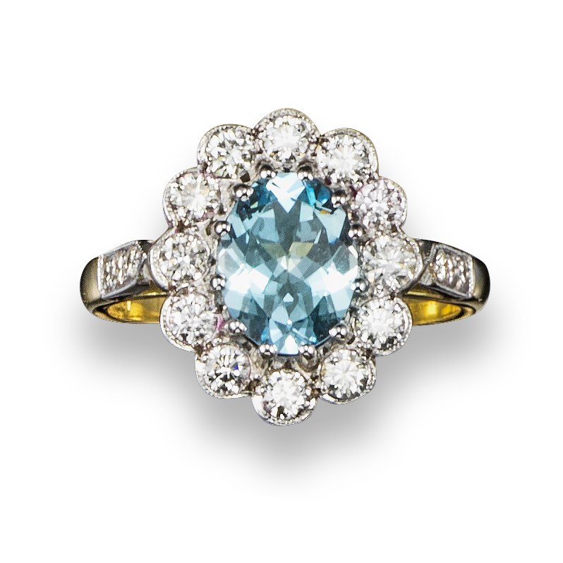 An aquamarine and diamond cluster ring