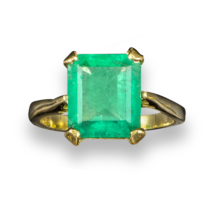 An emerald solitaire ring