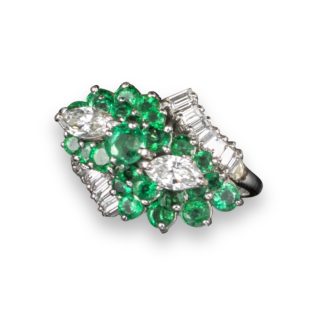An emerald and diamond cluster ring