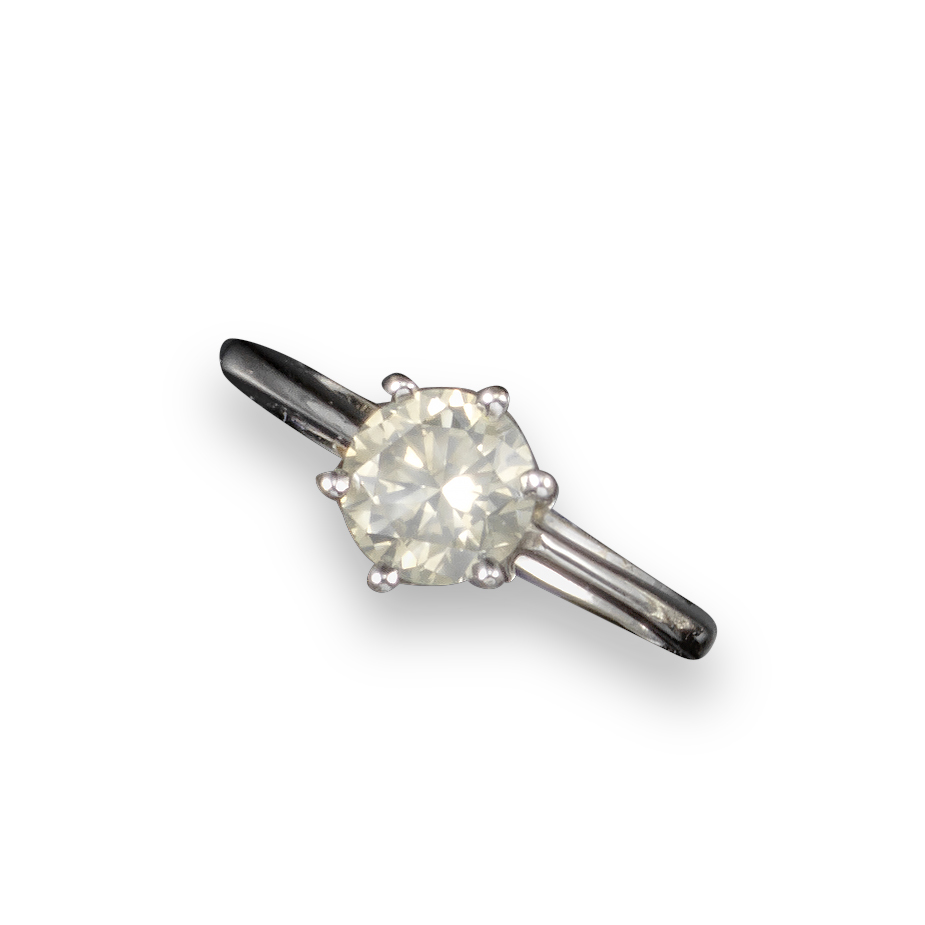 A diamond solitaire ring, the circular diamond weighs approximately 1.10cts, set in white gold, size M ½