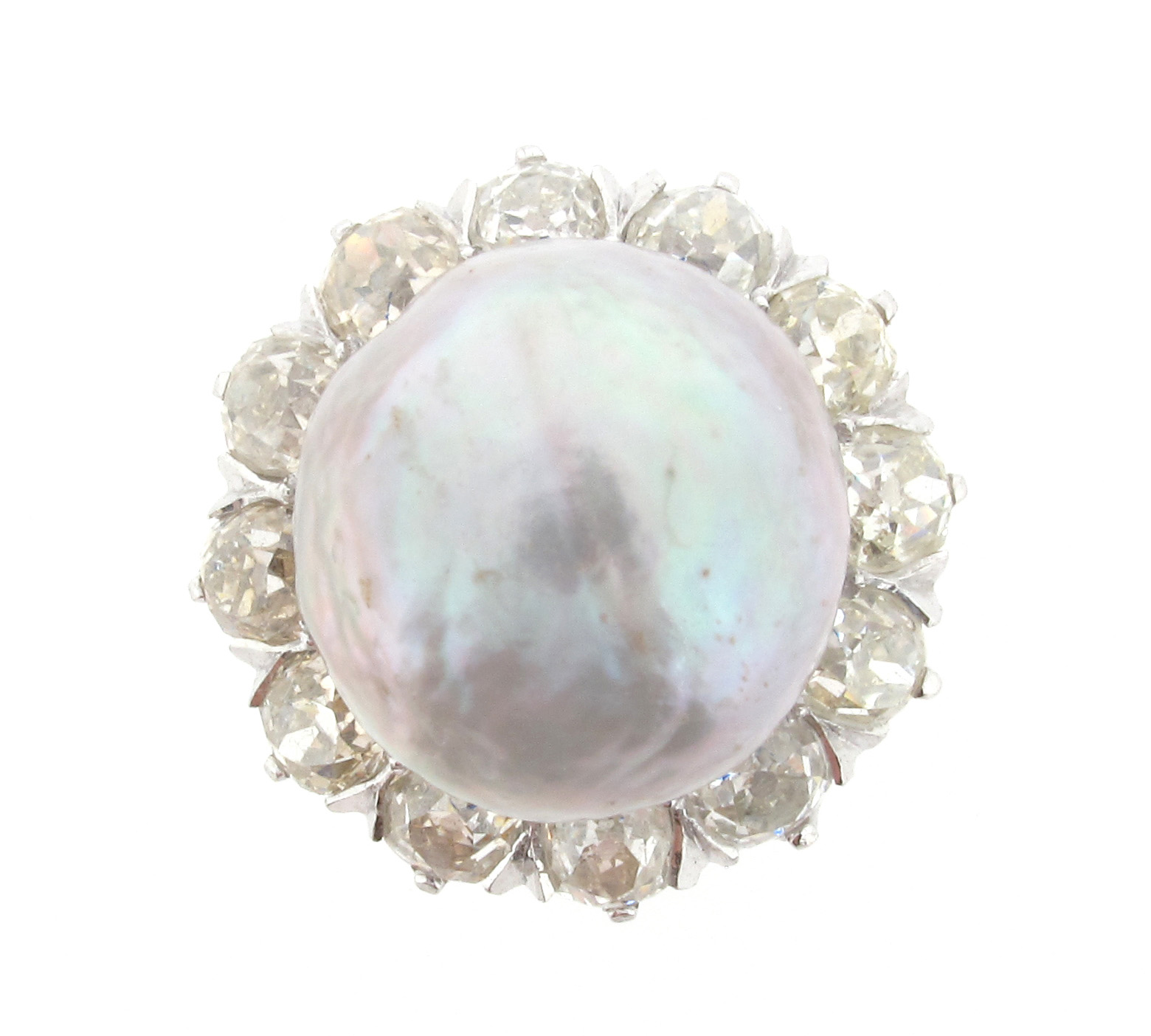 Accompanied by report number 78151-57 dated 16 April 2018 from GCS, London stating that the grey pearl measures 14.1 x 15.0 x 12.0mm and weighs 19.97cts (as stated by the client) and is natural saltwater. Comment: the base of the pearl has been worked.