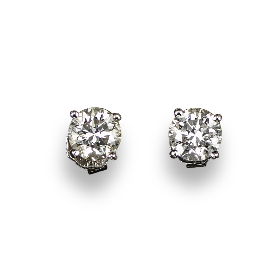 A pair of diamond stud earrings, the round brilliant-cut diamonds each weigh approximately 0.75cts and are claw set in platinum, with London platinum hallmarks for 2010, post fittings