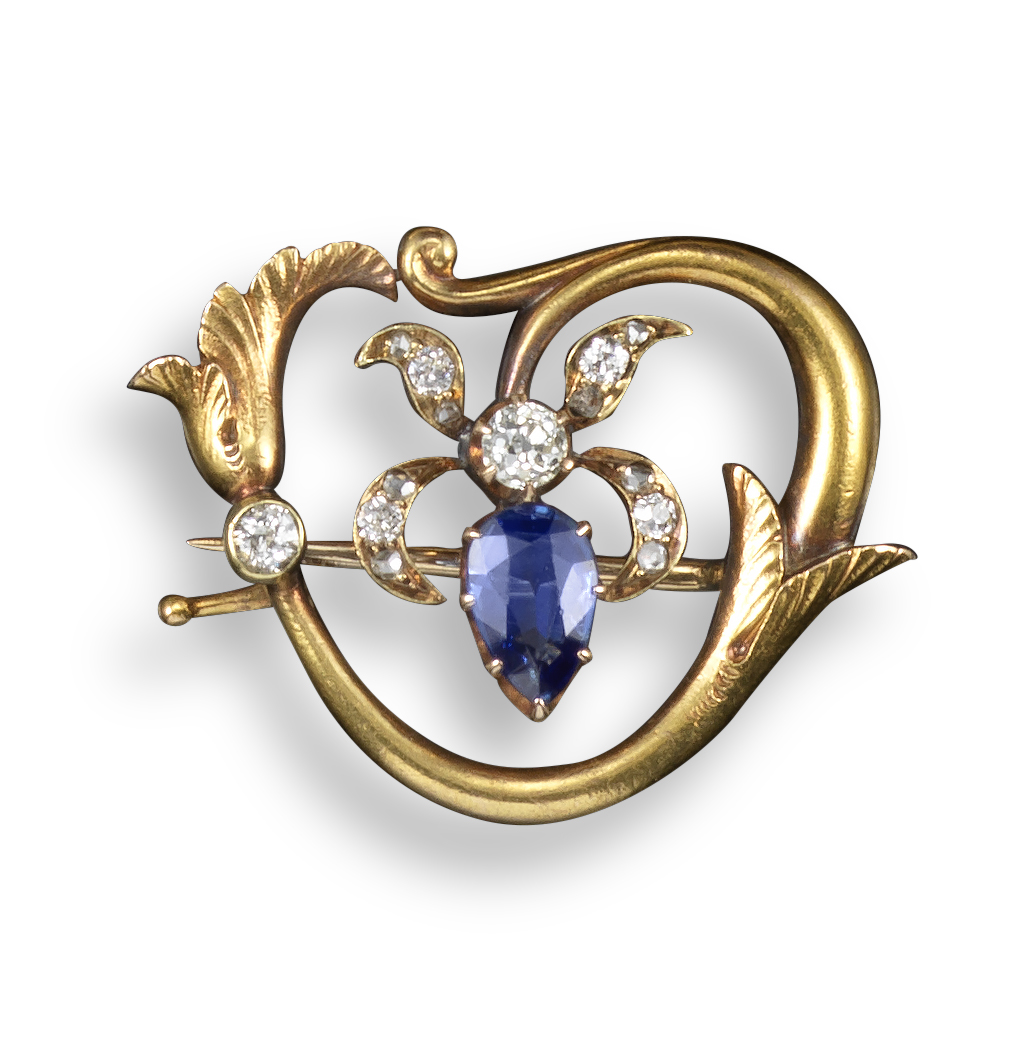 A sapphire and diamond-set Art Nouveau floral brooch by Fabergé