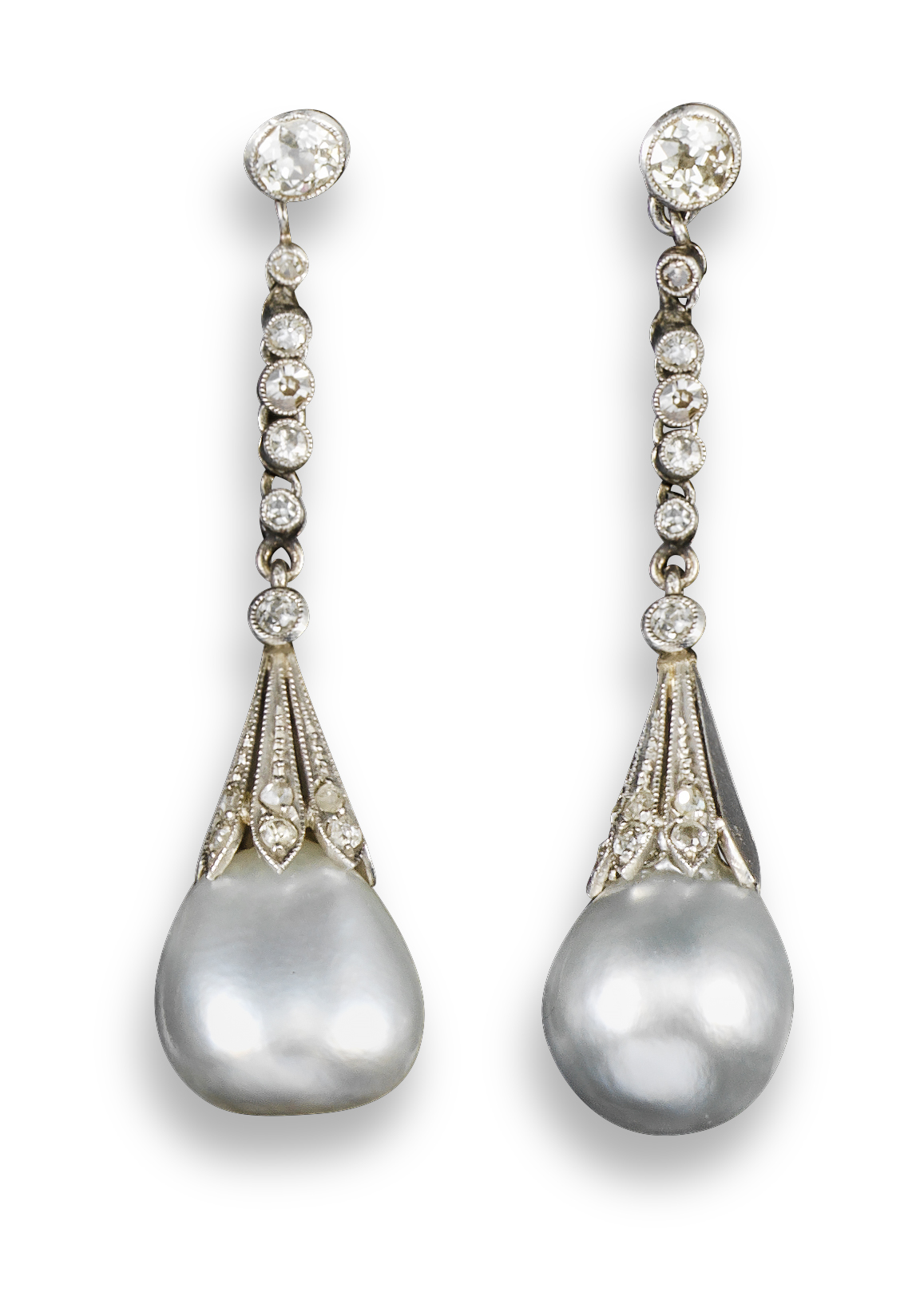 Accompanied by report number 105828 dated 8 October 2018 from DANAT, Bahrain, stating that the near-drop-shaped light gret pearls measure 11.73 x 11.69 x 8.3 and 11.13 x 11.01 x 9.79mm and are natural saltwater. Pearl origin: Pinctada sp.
