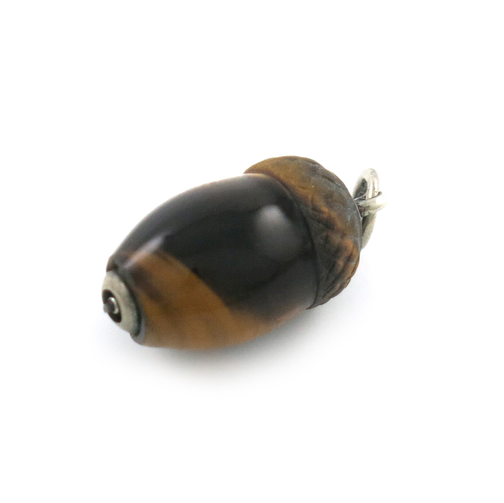 the tiger's eye body carved as an acorn, with a ring attachment, length closed 2.3cm.