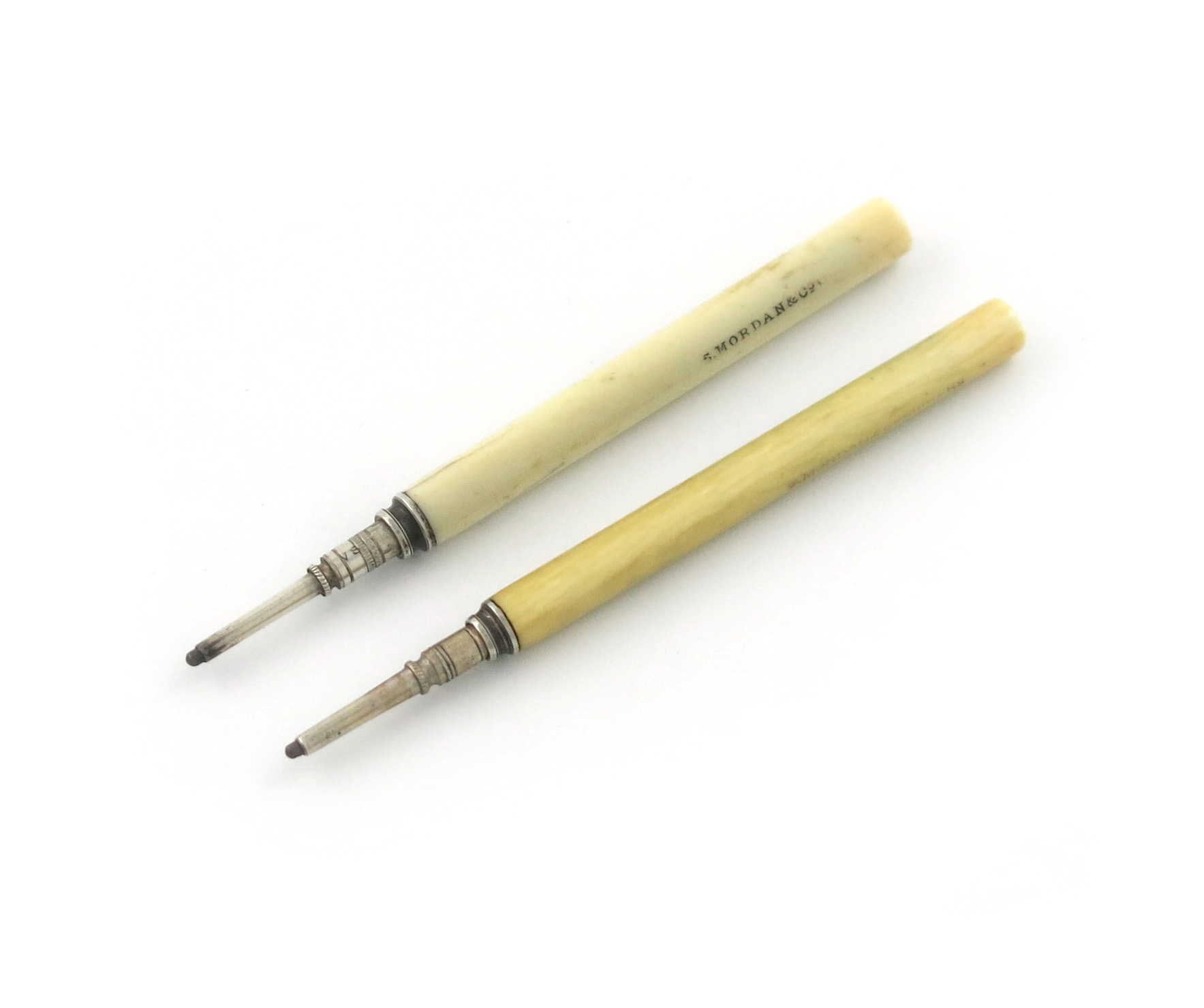 λTwo Victorian silver and ivory pencils,