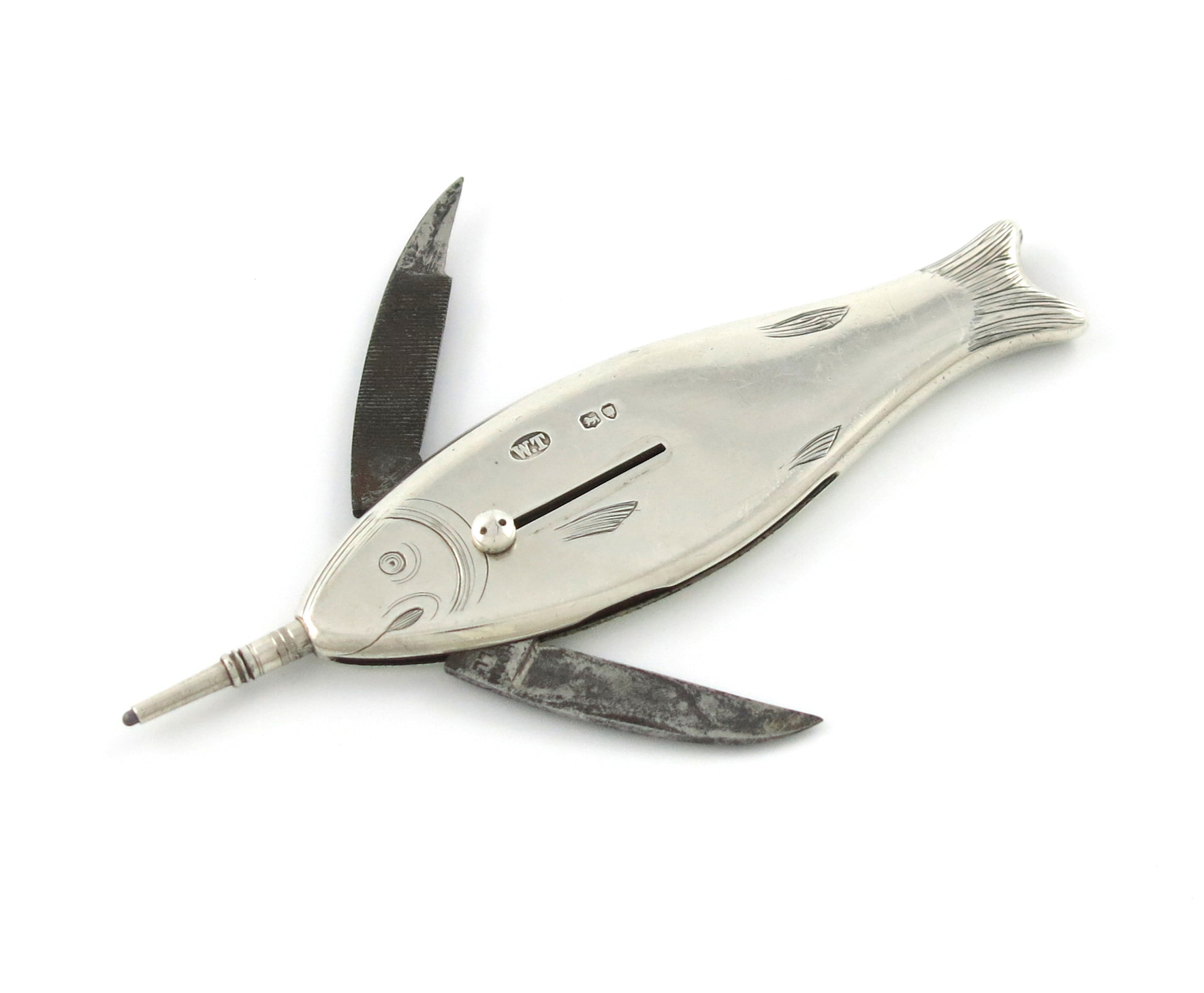 A Victorian novelty silver pencil, file, whistle and penknife,