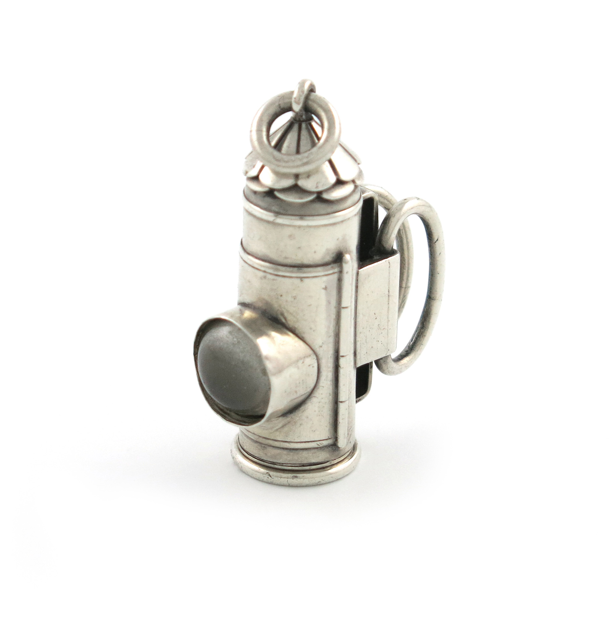 modelled as a railway lamp, with a ring attachment, length closed 5.3cm.