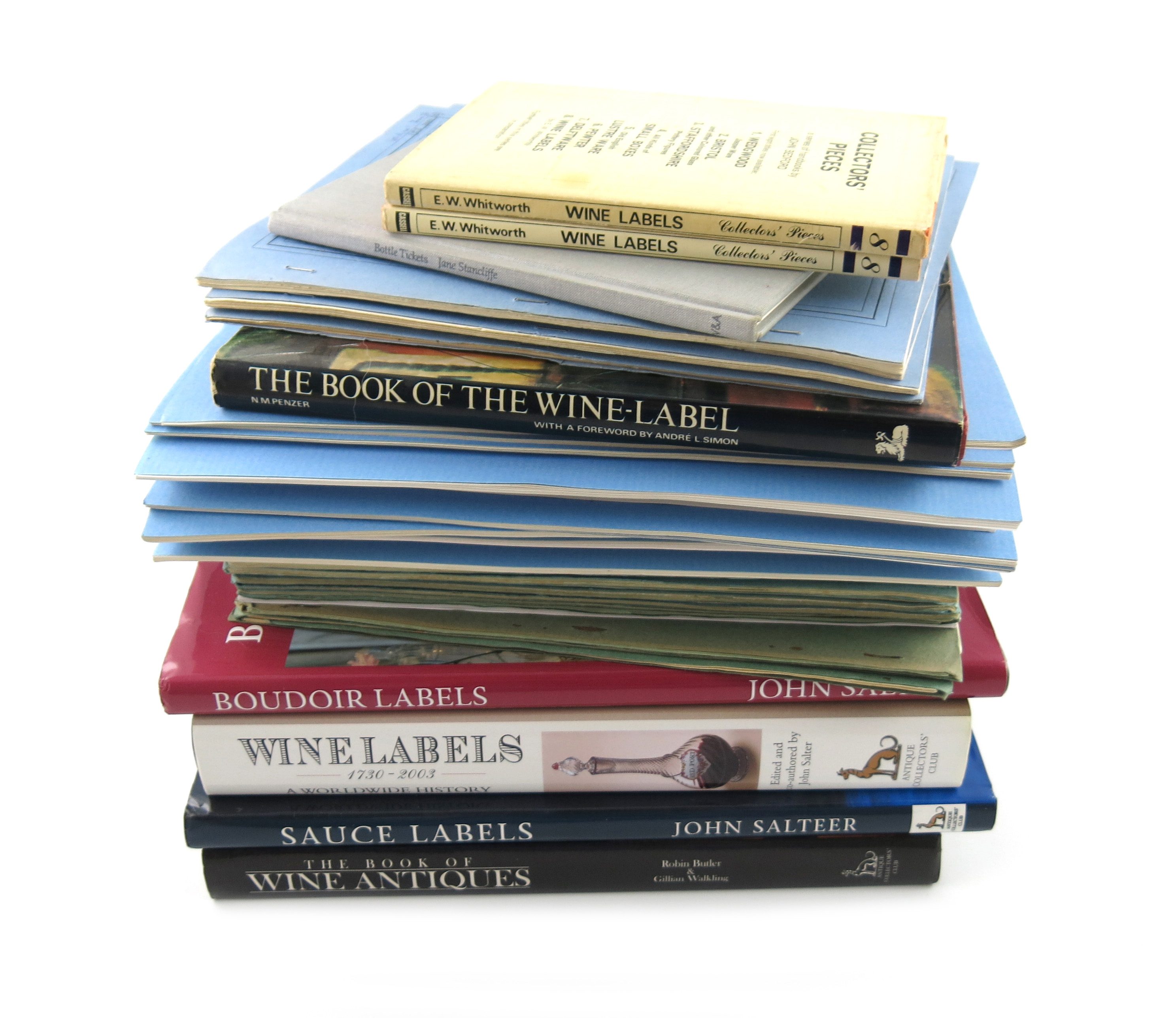 including: Salter, J., Wine Labels of the World, also by the same author Sauce labels and Boudoir labels, plus other volumes and copies of the Wine Label circle journal. (qty)