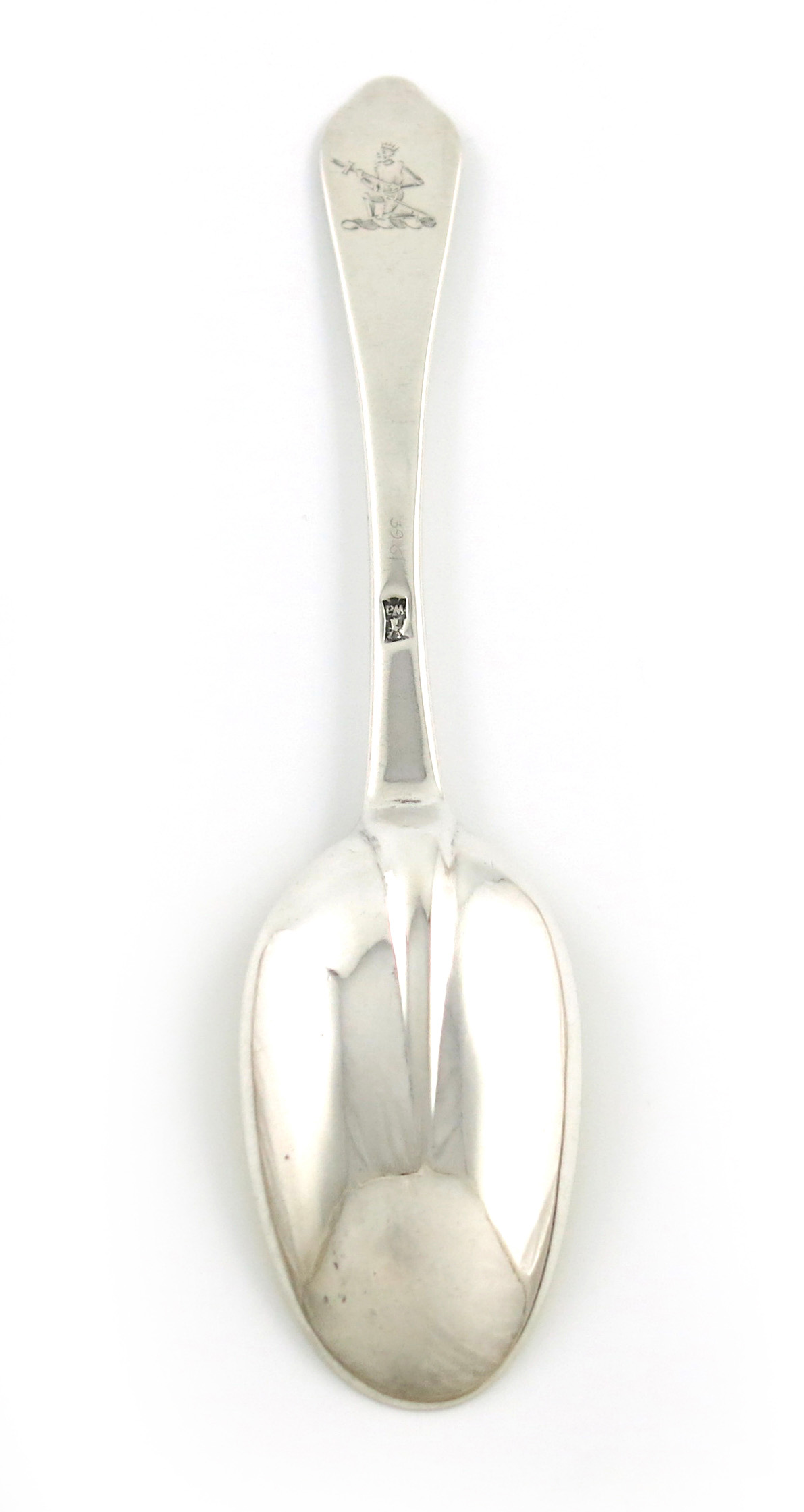 the gilded oval bowl with a plain rat-tail, the reverse of the terminal with a crest, length 19.9cm, approx. weight 2,2oz.