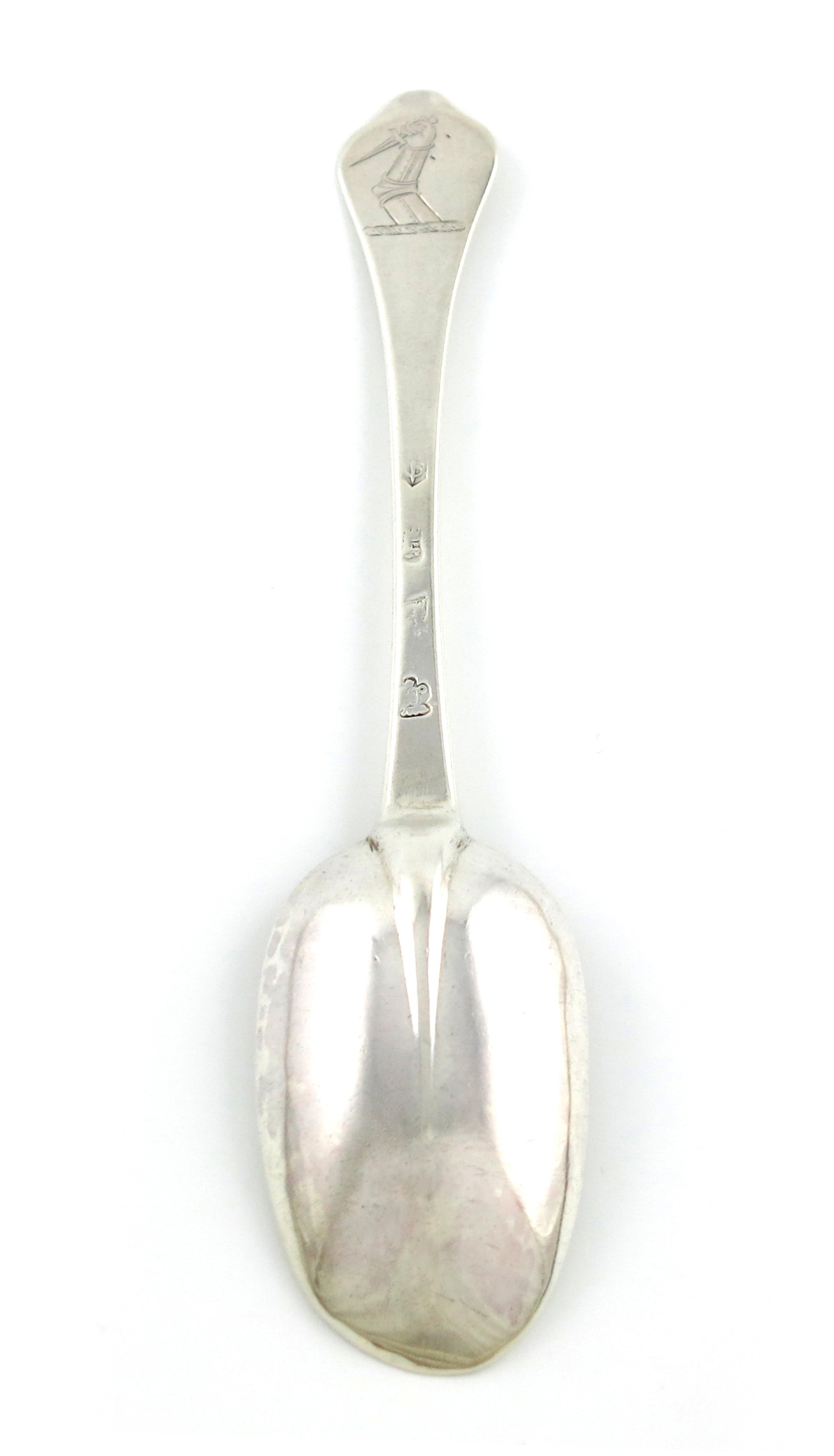 the oval bowl with a plain rat-tail, the reverse of the terminal with a crest, length 19.7cm, approx. weight 1.9oz.