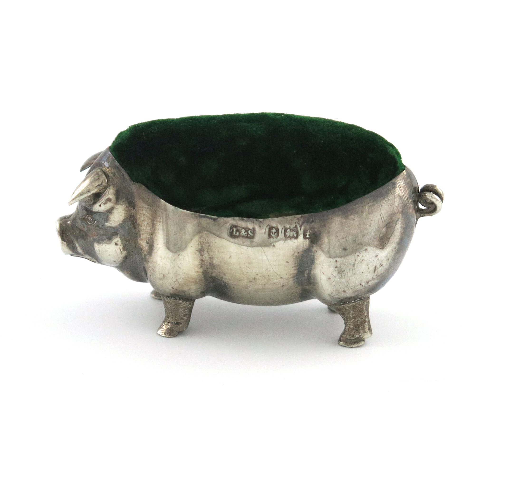 modelled in a standing position, green velvet cushion, length 5.5cm.