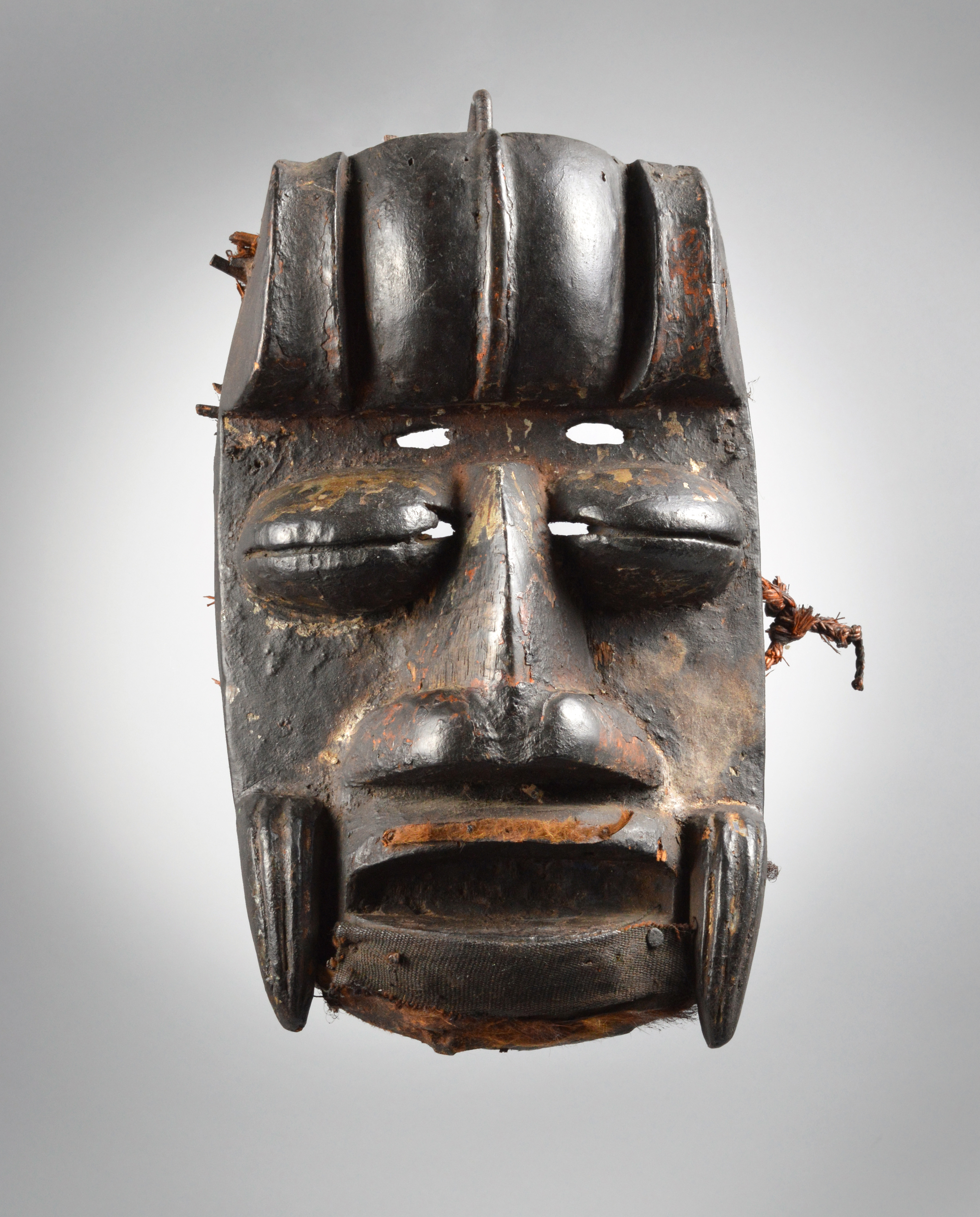 A Guere We mask Liberia with a black patina and remains of polychrome