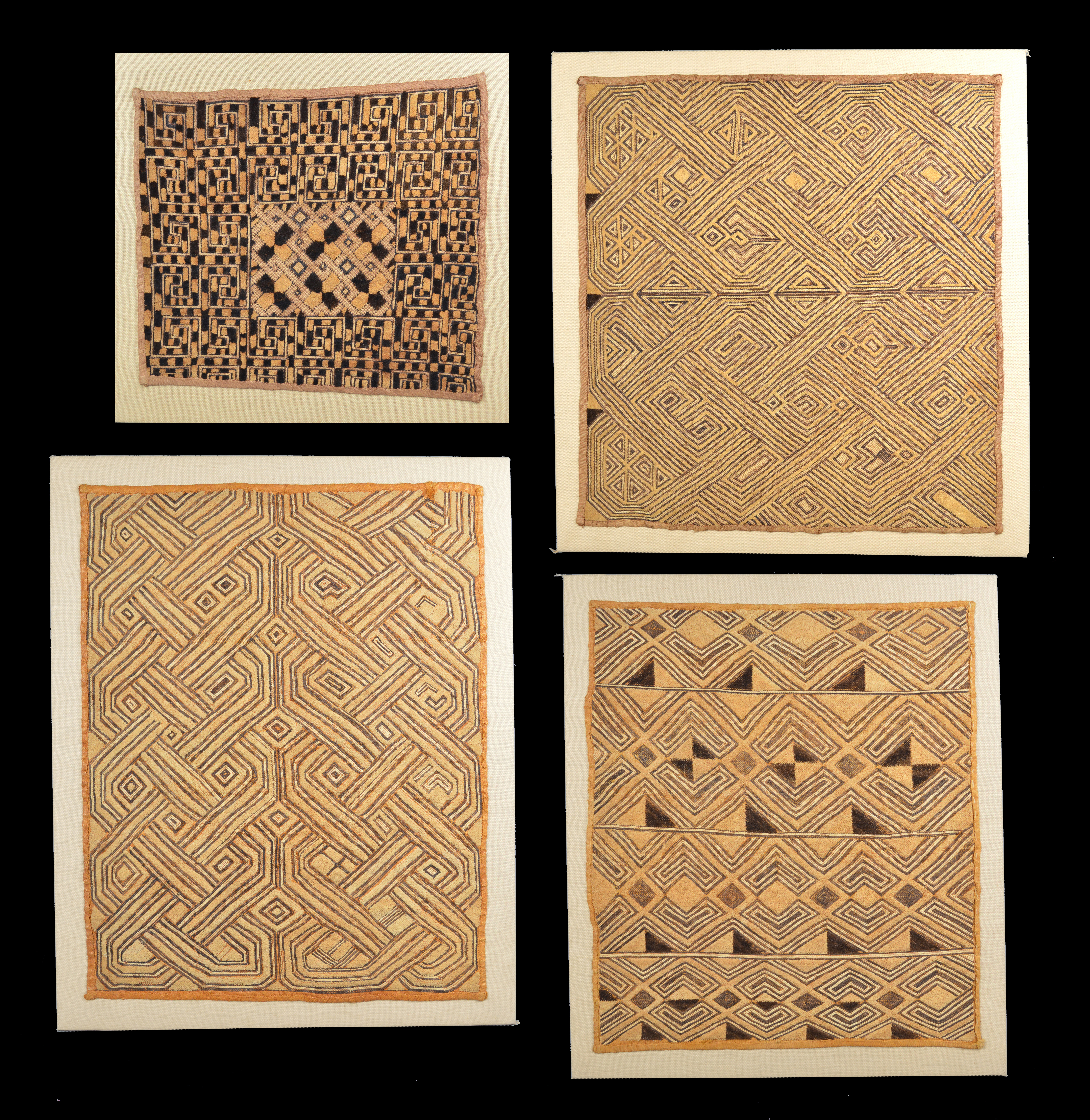 Four Kuba cloths Democratic Republic of Congo cut embroidered