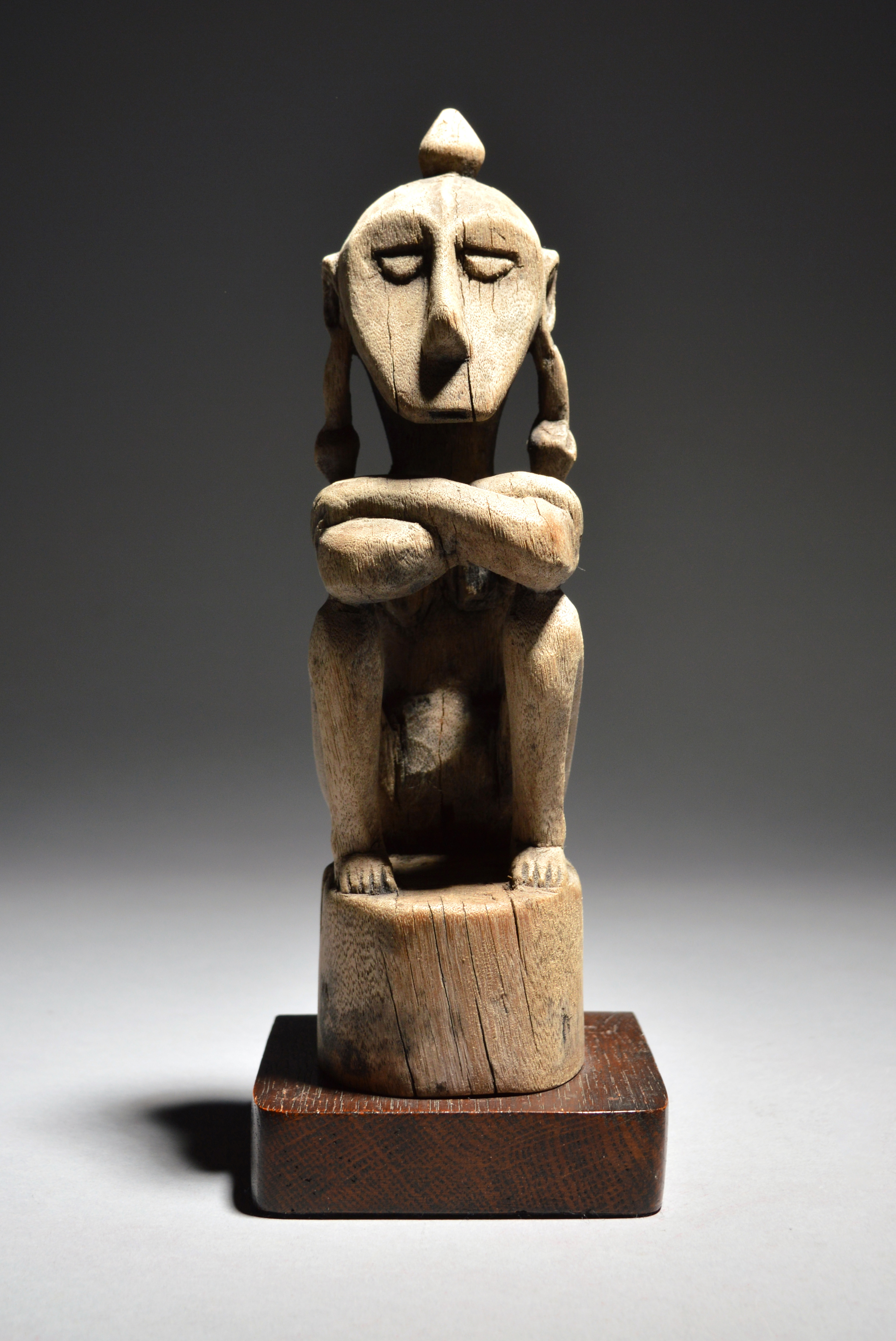 A Leti Islands ancestor figure Indonesia seated with arms crossed