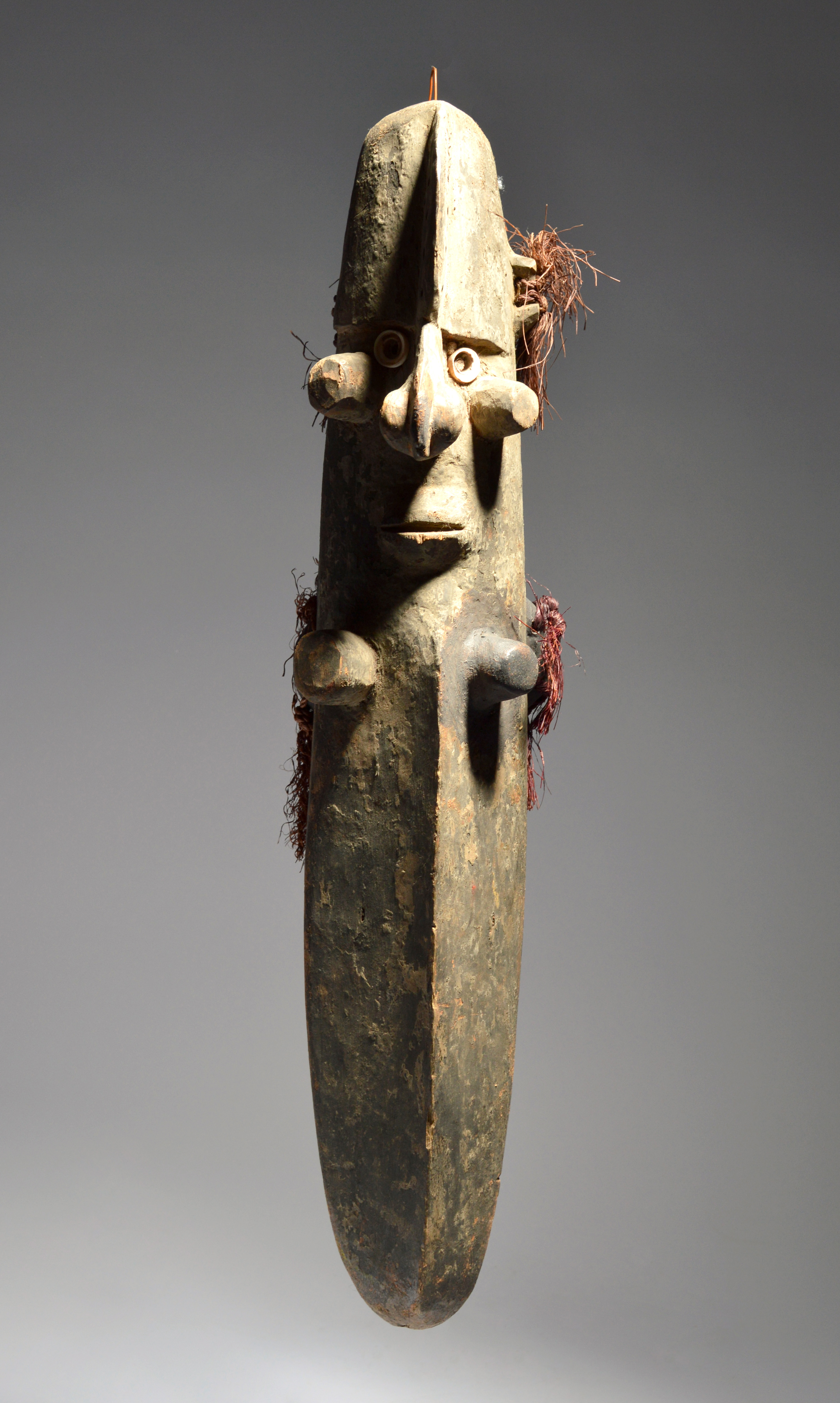 A Papua New Guinea mask Melanesia with inlaid shell eyes and tied fibre