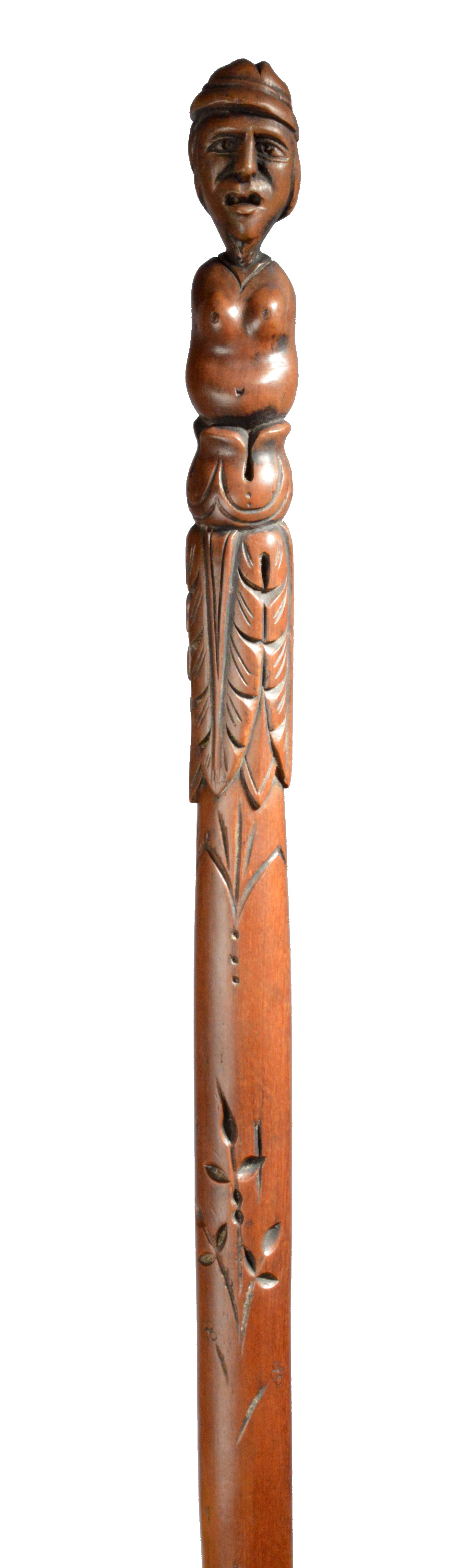 with a carved zig-zag handle and later sailor carved shaft and end with a figure,