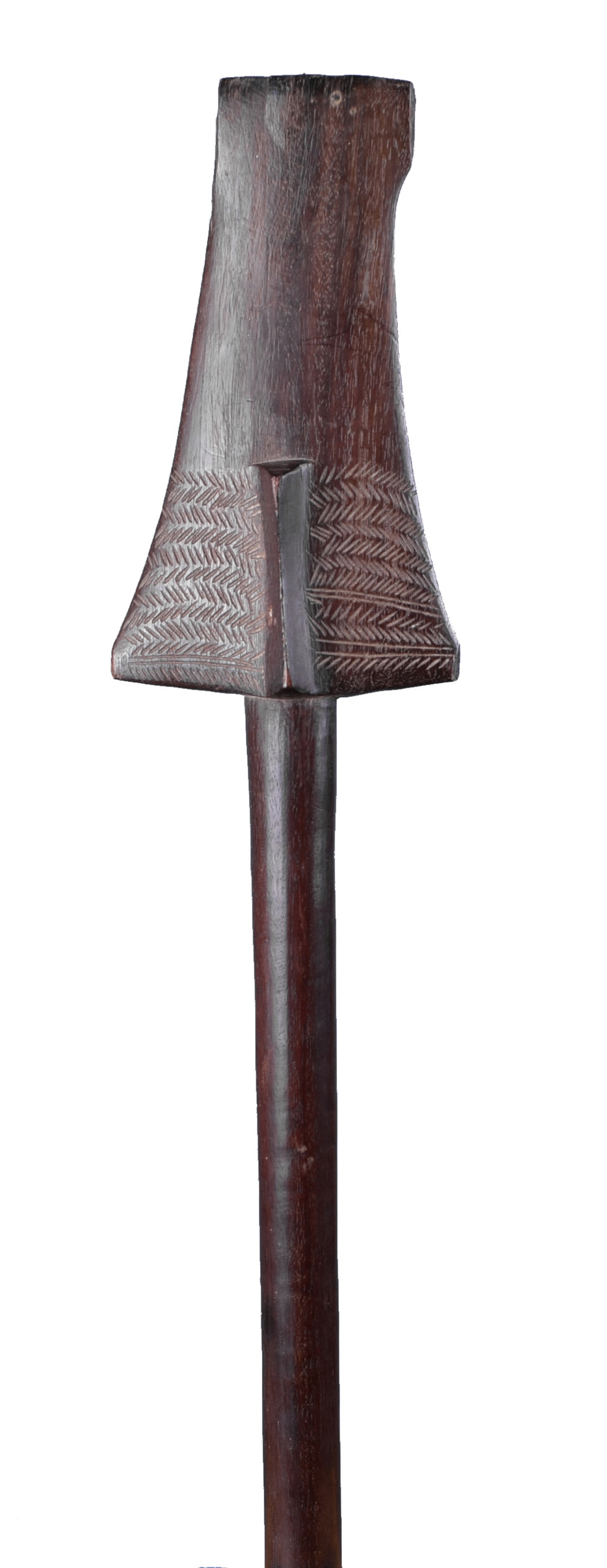 A Vanuatu club Melanesia with a tapering and flared blade with a curved protrusion either side...